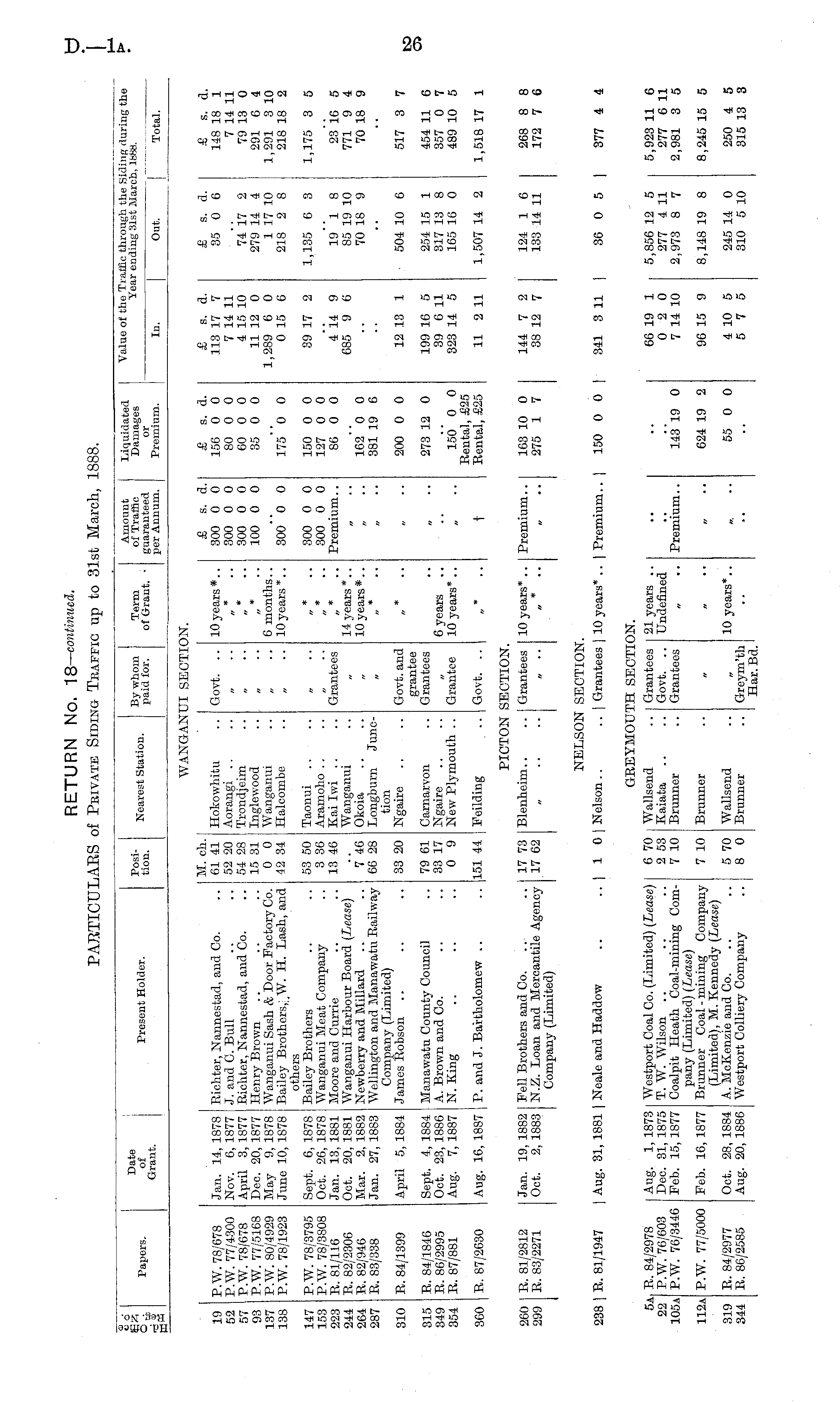 RETURN No. 18-continued. PARTICULARS of Private Siding Traffic up to 31st March, 1888.