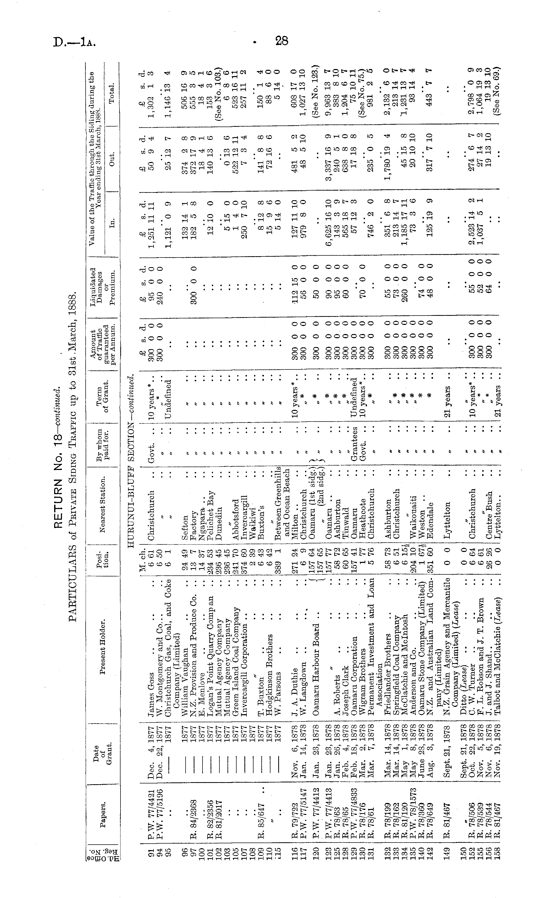 RETURN No. 18—continued. PARTICULARS of Private Siding Traffic up to 31st March, 1888.