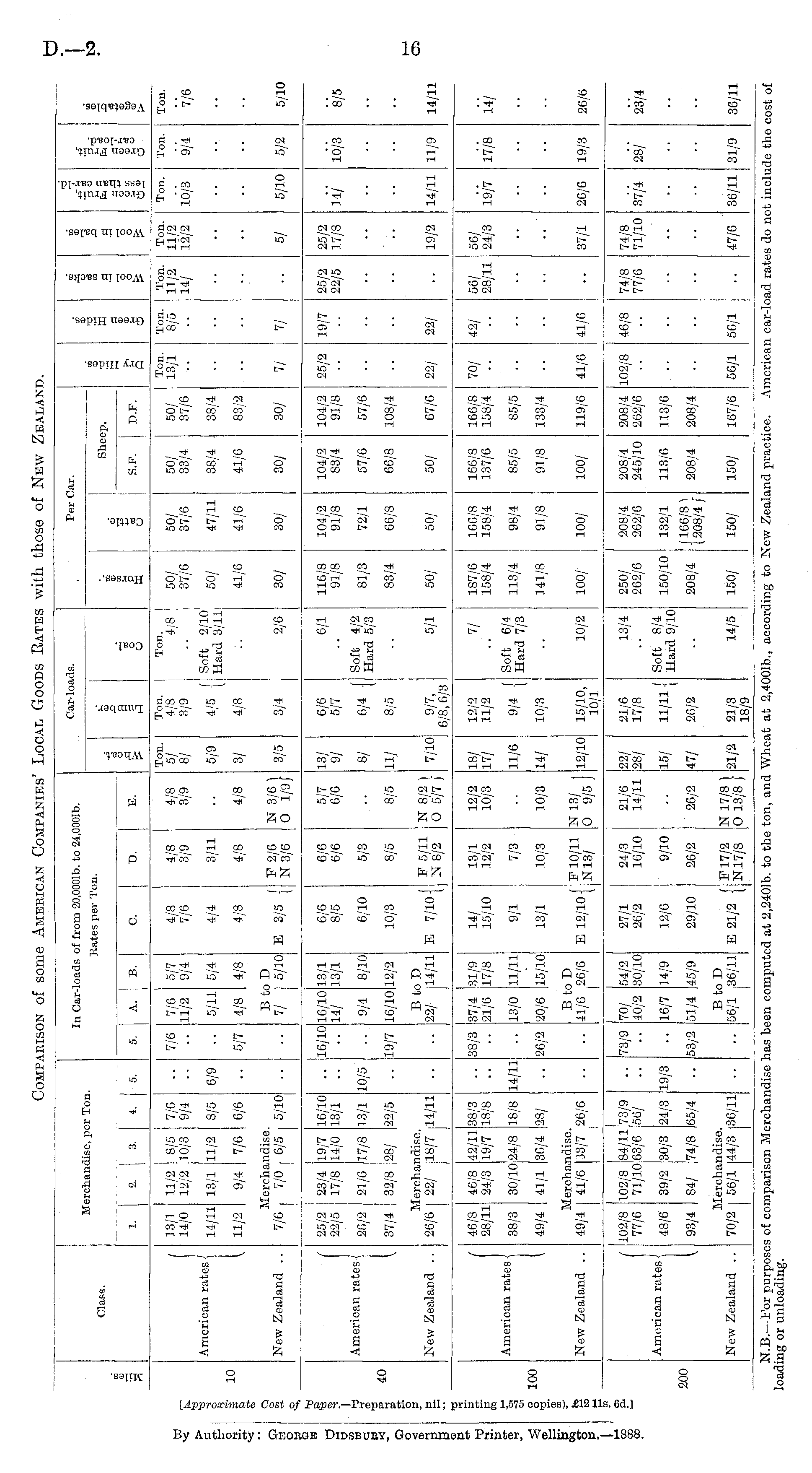 Comparison of some American Companies' Local Goods Rates with those of New Zealand.