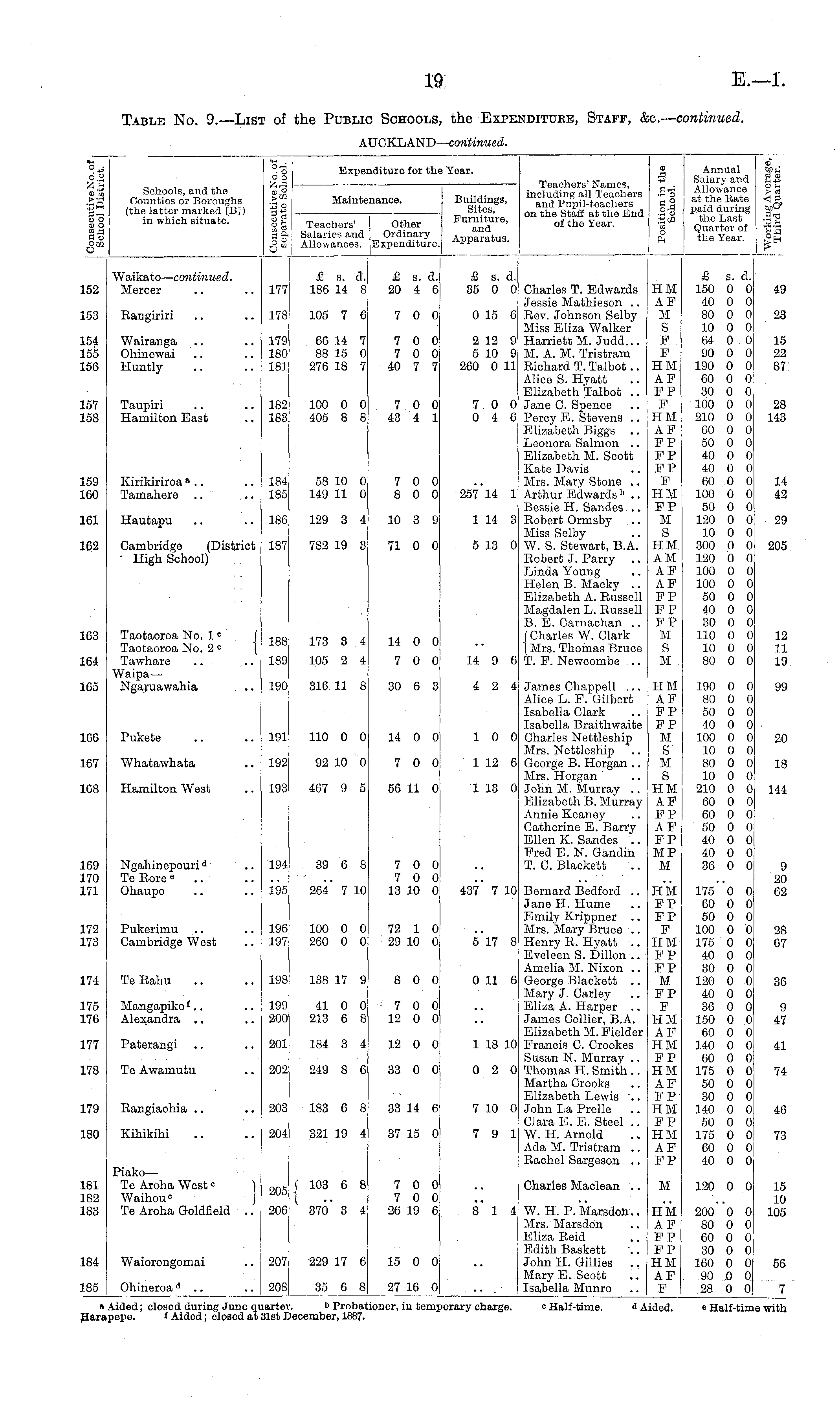 Table No. 9.—List of the Public Schools, the Expenditure, Staff, &c.— continued. AUCKLAND— continued.