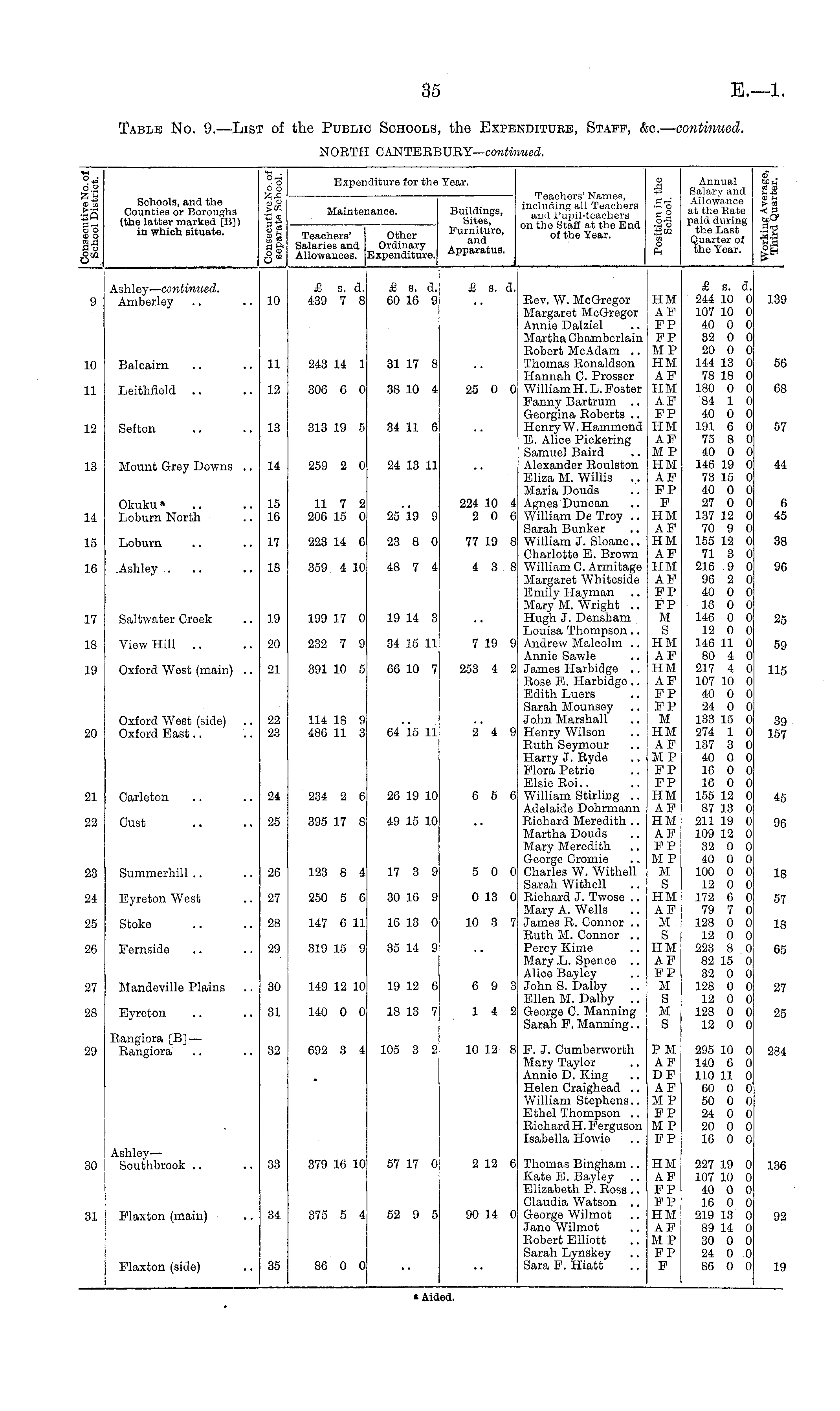Table No. 9. —List of the Public Schools, the Expenditure, Staff, &c. — continued. NORTH CANTERBURY— continued.