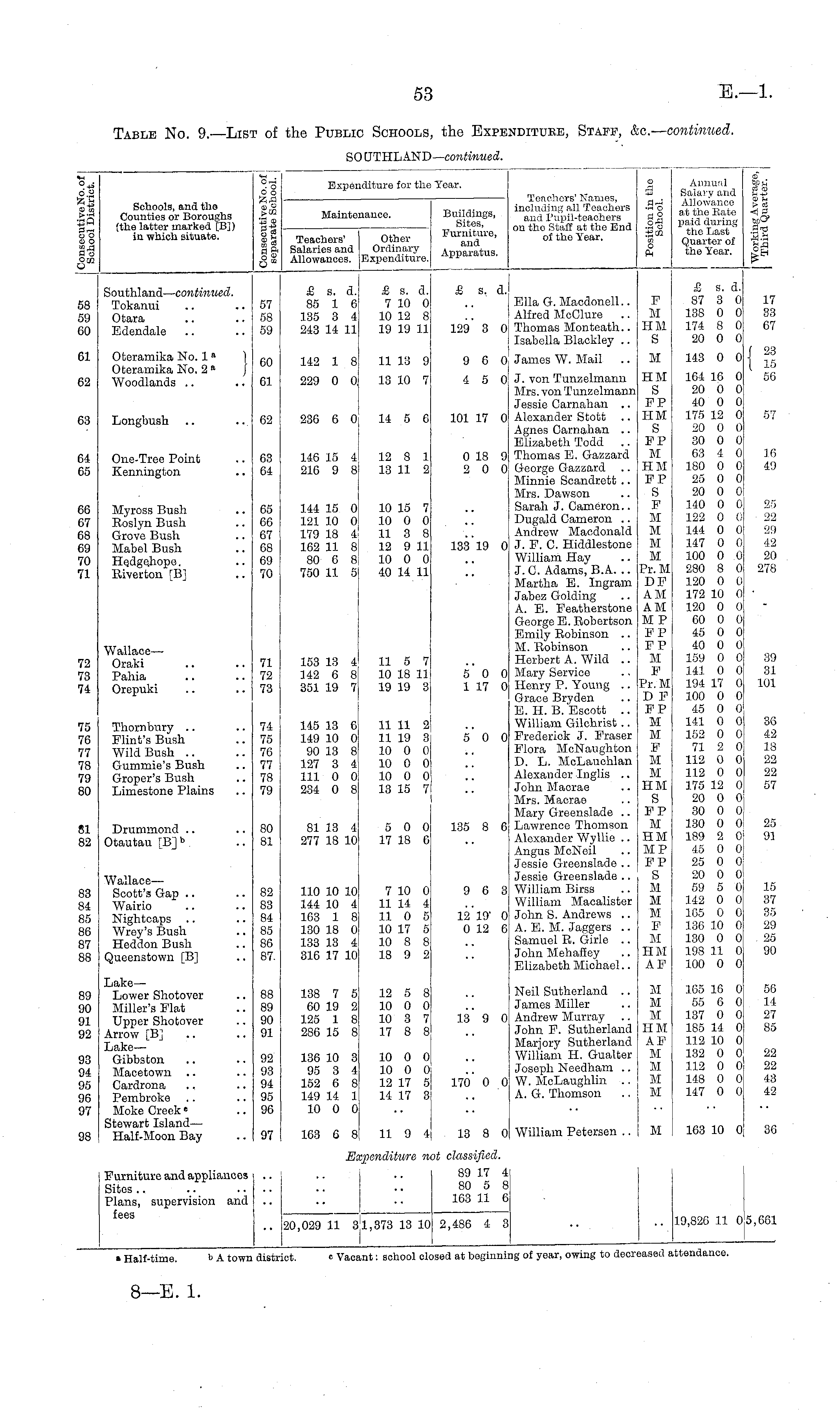 Table No. 9.—List of the Public Schools, the Expenditure, Staff, &c.— continued. SOUTHLAND— continued.
