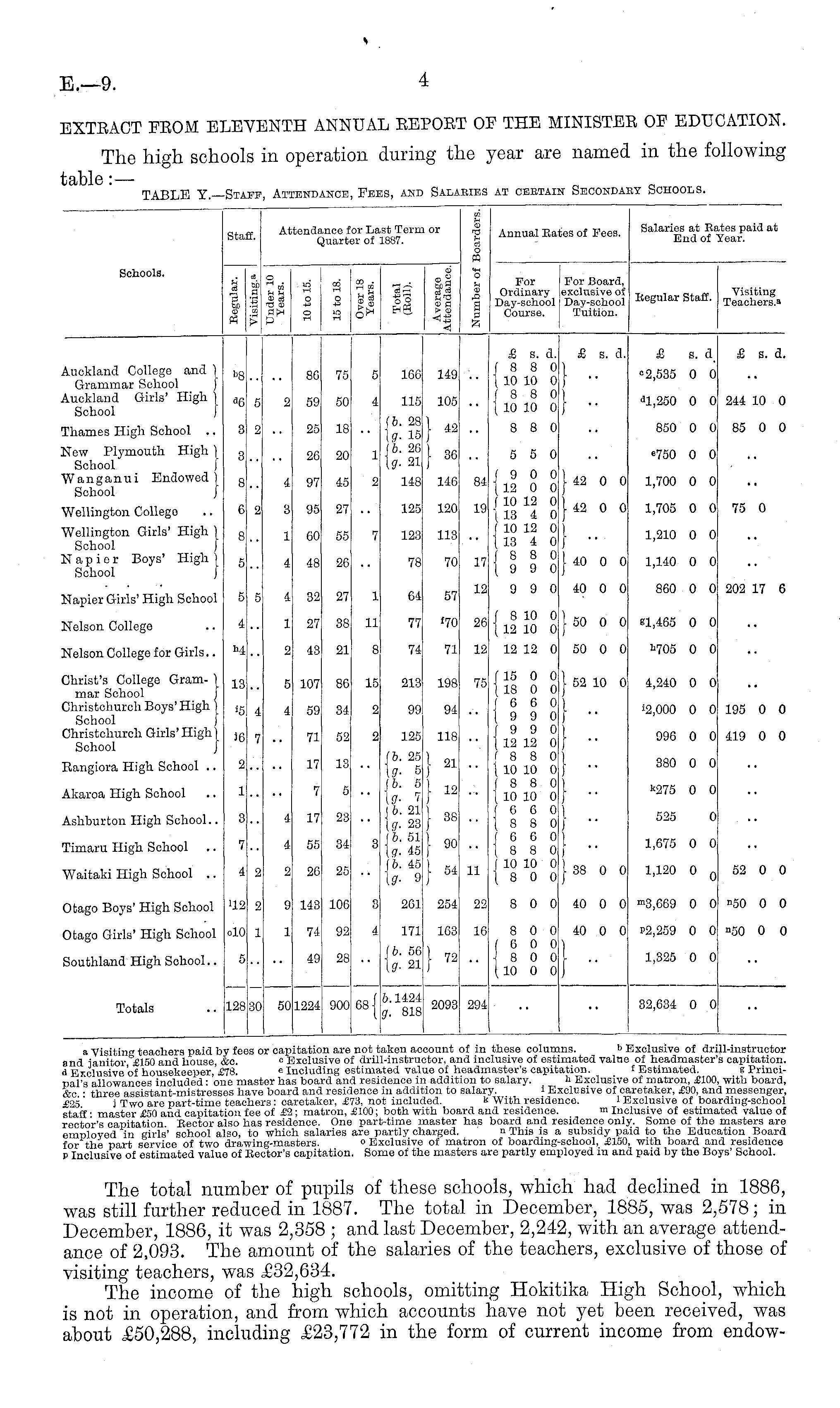EXTRACT FROM ELEVENTH ANNUAL REPORT OF THE MINISTER OF EDUCATION. The high schools in operation during the year are named in the following table: — TABLE Y.—Staff, Attendance, Fees, and Salaries at certain Secondary Schools.