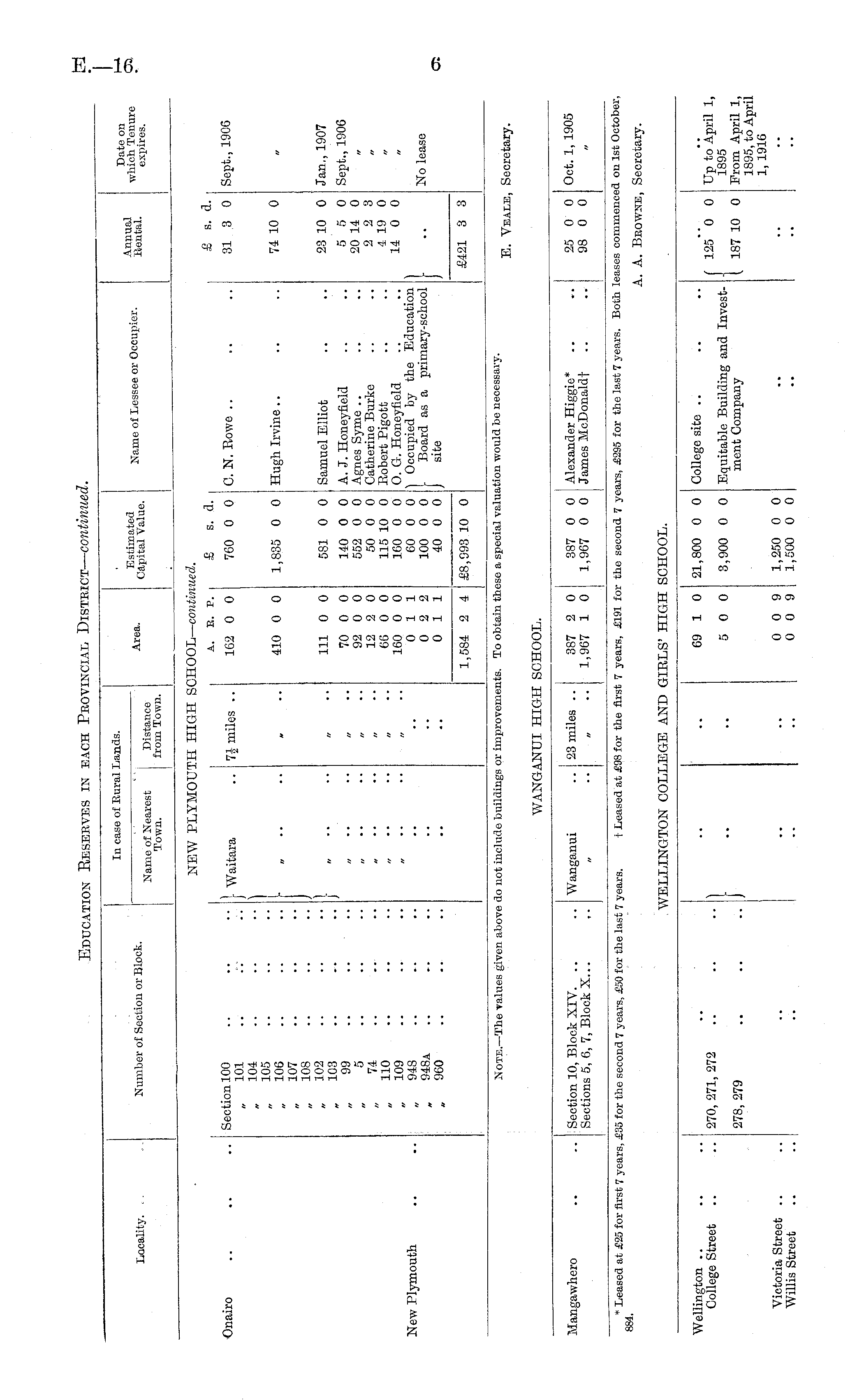 Mangawhero Section 10, Block XIV. .. Sections 5, 6, 7, Block X... .. Wanganui .. 23 miles .. 387 2 0 387 0 0 j Alexander Higgie* 1,967 1 0 1,967 0 0 I James McDonald! 25 0 0 98 0 0 Oct. 1, 1905 * Leased at £25 for first 7 years, £35 for the second 7 years, £50 for the last 7 years. 884. t Leased at £98 for the first 7 years, £191 for the second 7 years, £295 for the last 7 years. Both leases commenced on 1st October, A A "RT?nw.crtrtrt rt-Acrptn.w