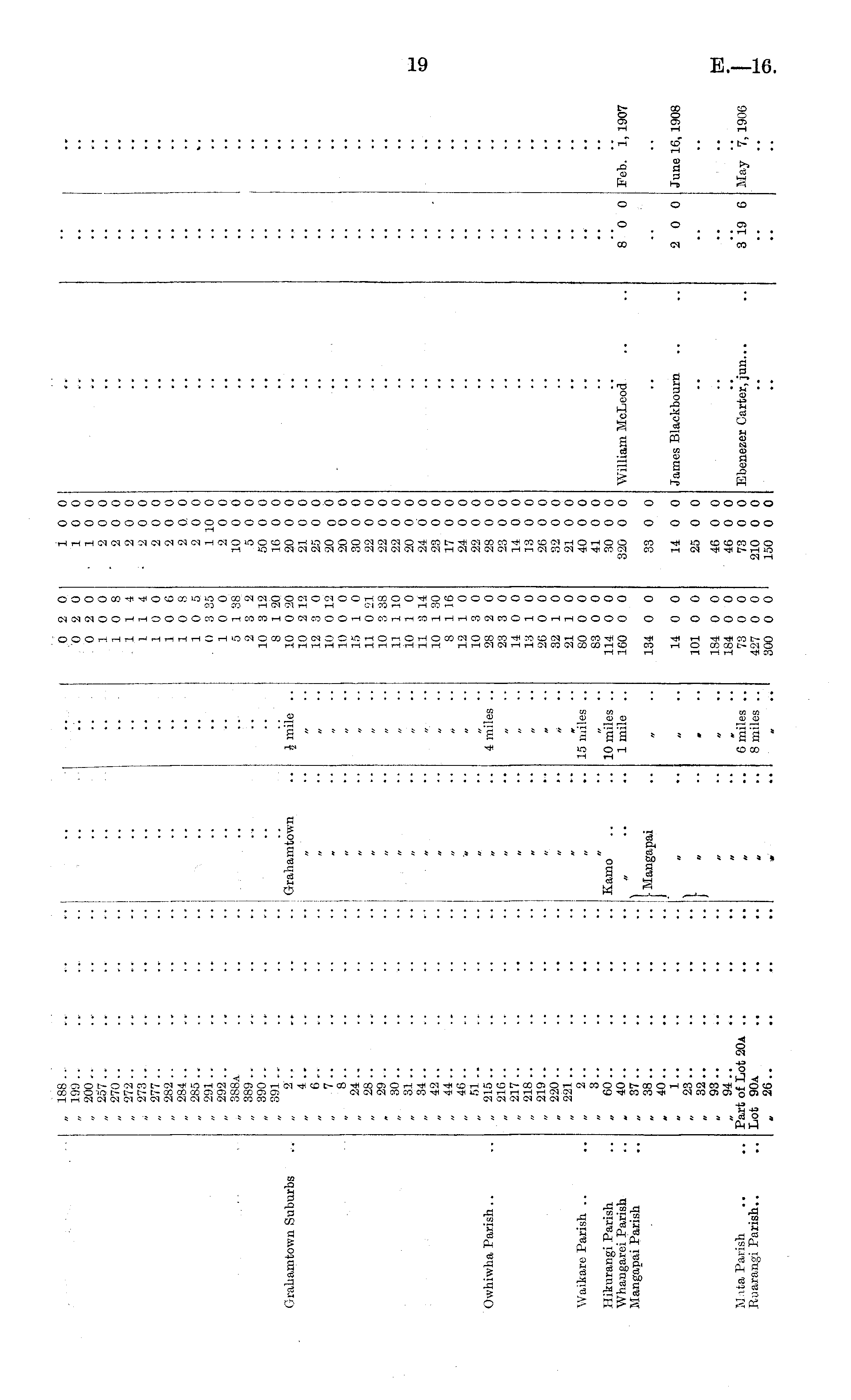 Grahamtown Suburbs „ 188.. „ 199 .. „ 200 .. „ 257 „ 270 .. „ 272 .. „ 273 .. „ 277 .. „ 282 .. „ 284 „ 285 .. „ 291 .. „ 292 .. „ 388a „ 389 .. „ 390 „ 391.. 2 .. '„ 4.. '" 6 ... „ 7 .. 8 .. „ 24 .. „ 28 .. „ 29 .. „ 30 .. „ 31 .. „ 34 .. „ 42 .. „ 44 .. „ 46 .. „ 51 „ 215 .. „ 216 .. „ 217 .. „ 218 .. „ 219 .. „ 220 .. „ 221 .. 2 .. 3 .. „ 60 .. , 40 .. „ 37 .. „ 38 .. „ 40 .. 1 .. „ 23 .. „ 32 .. „ 93 .. „ 94 .. Part of Lot 20a .. Lot 90a „ 26 .. .. Grab am town .. Kamo .. t Mangapai :.;} \ \ mile .. 0 2 0 0 2 0 0 2 0 10 0 10 8 114 114 10 0 10 0 10 8 10 5 . 0 3 35 10 0 5 1 38 2 3 2 10 3 12 8 1 20 10 0 20 10 2 12 12 3 0 10 0 12 10 0 0 15 1 0 11 0 21 10 3 38 11 1 10 10 1 0 11 3 14 10 1 30 8 1 16 12 1 0 10 3 0 28 2 0 23 3 0 14 0 0 13 1 0 26 0 0 32 1 0 2.1 1 0 80 0 0 83 0 0 114 0 0 160 0 0 10 0 10 0 10 0 2 0 0 2 0 0 2 0 0 2 0 0 2 0 0 2 0 0 2 0 0 2 0 0 1 10 0 2 0 0 10 0 0 5 0 0 50 0 0 16 0 0 20 0 0 21 0 0 25 0 0 20 o 0 20 0 0 30 0 0 22 0 0 22 0 0 22 0 0 20 0 0 24 0 0 23 0 0 17 0 0 24 0 0 22 0 0 28 0 0 23 0 0 14 0 0 13 0 0 26 0 0 32 0 0 21 0 0 40 0 0 41 0 0 30 0 0 320 0 0 Owhiwha Parish.. 4 miles .. Waikare Parish .. 15 miles .. Hikurangi Parish Whangarei Parish Mangapai Parish 10 miles .. 1 mile .. William McLeod 8"o 0 Feb. 'l, 1907 134 0 0 33 0 0 14 0 0 14 0 0 James Blackbourn 2 0 0 June 16, 1908 Mata Parish Ruarangi Parish.. 101 0 0 25 0 0 6 miles .. 8 miles .. 184 0 0 184 0 0 73 0 0 427 0 0 300 0 0 46 0 0 46 0 0 73 0 0 210 0 0 150 0 0 Ebenezer Carter, jun... 319 6 May 7,1906