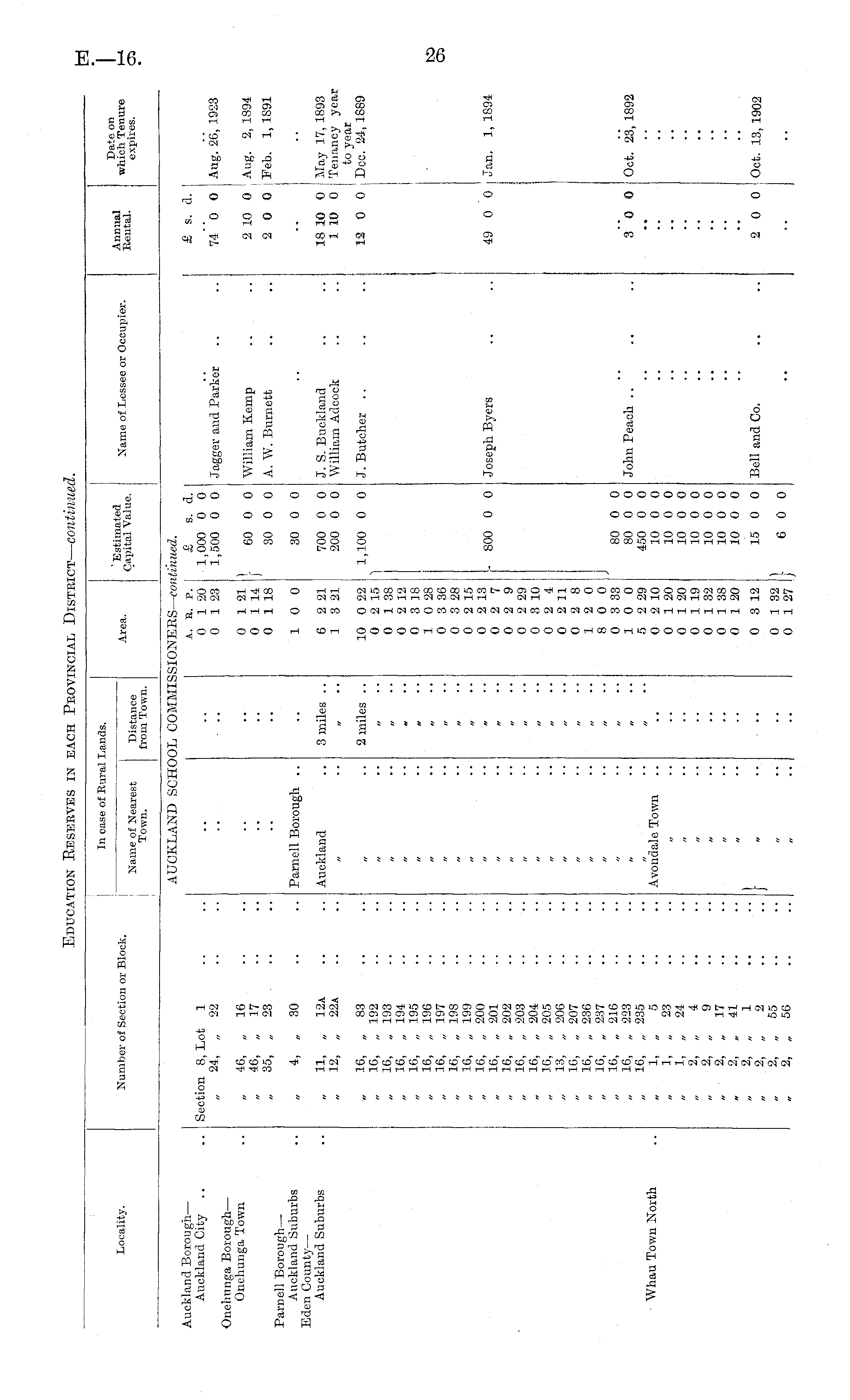 Locality. Number of Section or Block. I In case of Rure Name of Nearest Town. In case of Rural Lands. al Lands. Distance from Town. Area. ' Estimated Capital Value. Name of Lessee or Occupier. Annual Rental. Date on which Tenure expires. AUCKLAND SCH( iL COMMISSIONERS— continued. A. R. P. [ £ s. d. 0 1 20 1,000 0 0 0 1 23 j 1,500 0 0 Auckland Borough — Auckland City £ s. d. Section 8, Lot 1 24, „ 22 Jagger and Parker 74 0 0 Aug. 26, 1923 Onehunga Borough — Onehunga Town 46, „ 16 46, „ 17 „ 35, „ 23 :: oli! 1 60 ° ° 0 1 18 30 0 0 William Kemp 2 10 0 Aug. 2, 1894 Parnell Borough — Auckland Suburbs Eden County — Auckland Suburbs A. W. Burnett 2 0 0 Feb. 1, 1891 4, . 30 Parnell Borough .. 10 0 30 0 0 11, „ 12a 12, „ 22a Auckland 3 miles .. 6 2 21 700 0 0 1 3 21 200 0 0 J. S. Buckland William Adcock 18 10 0 1 10 0 May 17, 1893 Tenancy yeal to vear Dec. "24, 1889 Whau Town North 16, „ 83 16, „ 192 16, „ 193 16, „ 194 16, „ 195 16, „ 196 16, „ 197 16, „ 198 16, „ 199 16, „ 200 16, „ 201 10, „ 202 16, „ 203 16, „ 204 10, „ 205 13, „ 206 16, „ 207 16, „ 236 16, „ 237 16, „ 216 16, „ 223 16, „ 235 1, „ 5 1, „ 23 1, „ 24 2, „ 4 2, „ 9 2, „ 17 2, „ 41 2, „ 1 2, „ 2 2, „ 55 2, „ 56 2 miles .. 10 0 22 1,100 0 0 0 2 15 "I 0 1 38 0 2 12 0 3 18 1 0 28 0 3 36 0 3 28 0 2 15 g "7 - 800 0 0 "„ .. 0 2 9 0 2 29 0 3 10 0 2 4 0 2 11 0 2 8 12 0 8 0 0 0 3 33 80 0 0 10 0 80 0 0 5 2 29 450 0 0 0 2 10 10 0 0 0 1 20 10 0 0 0 1 20 10 0 0 0 1 19 10 0 0 0 1 32 10 0 0 0 1 38 10 0 0 0 1 20 10 0 0 [- 800 0 0 J. Butcher .. Joseph Byers 12 0 0 49 0 0 Jan, 1, 1894 Avondale Town SO 0 0 80 0 0 450 0 0 10 0 0 10 0 0 10 0 0 10 0 0 10 0 0 10 0 0 10 0 0 John Peach .. 3*0 0 Oct. 23, 1892 } . .. 0 3 12 15 0 0 15 0 0 Bell and Co. 2 0 0 Oct. 13, 1902 0 1 32 ) 0 127 I o u u 6 0 0