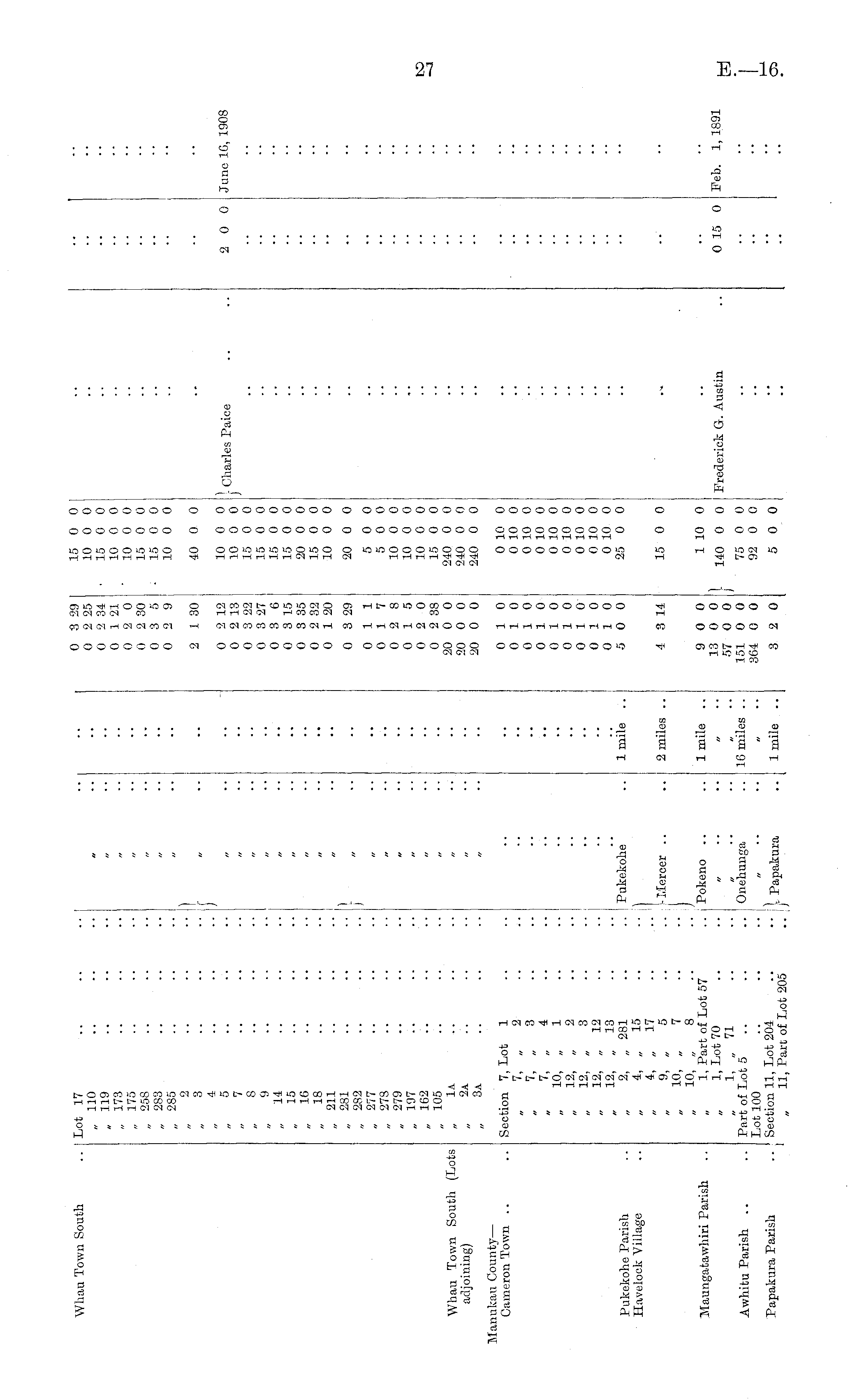 Whau Town South Lot 17 ,,110 ,,119 ,,173 ,,175 ,,258 ,,283 ,,285 „ 2 "„ 3 „ 4 „ 5 „ 7 8 „ 9 „ 14 „ 15 „ 16 „ 18 ,,211 ,,281 „ 282 ,,277 ,,278 ,,279 ,,197 ,,162 ,,105 „ 1a 2a 3a :: j " v.). 0 3 29 0 2 25 0 2 34 0 1 21 0 2 0 0 2 30 0 3 5 0 2 9 15 0 0 10 0 0 15 0 0 10 0 0 10 0 0 15 0 0 15 0 0 10 0 0 2 1 30 40 0 0 0 2 12 0 2 13 0 3 22 0 3 27 0 3 6 0 3 15 0 3 35 0 2 32 0 1 20 10 0 0 10 0 0 15 0 0 15 0 0 15 0 0 15 0 0 20 0 0 15 0 0 10 0 0 - Charles Paiee 2 0 0 June 10, 1908 0 3 29 20 0 0 0 11 0 1 7 0 2 8 0 15 0 2 0 0 2 38 20 0 0 20 0 0 20 0 0 5 0 0 5 0 0 10 0 0 10 0 0 10 0 0 15 0 0 240 0 0 240 0 0 240 0 0 Whau Town South (Lots adjoining) Mannkau County — Cameron Town Section 7, Lot 1 7, „ 2 7, „ 3 7, „ 4 10, „ 1 12, „ 2 12, „ 3 12, „ 12 12, „ 13 2, „ 281 4, „ 15 4, „ 17 9, „ 5 10, „ 7 10, 8 1, Part of Lot 57 1, Lot 70 1, „ 71 Part of Lot 5 Lot 100 Section 11, Lot 204 11, Part of Lot 205 .. Pukekohe .. I \ Mercer .. .. Pokeno .. Onehunga ' ,- Papakura 0 10 0 10 0 10 0 10 0 10 0 10 0 10 0 10 0 10 5 0 0 0 10 0 0 10 0 0 10 0 0 10 0 0 10 0 0 10 0 0 10 0 0 10 0 0 10 0 25 0 0 Pukekohe Parish Havelock Village 1 mile .. 2 miles .. 4 3 14 15 0 0 a 1. Maungatawhiri Parish 1 mile .. 9 0 0 13 0 0 57 0 0 151 0 0 364 0 0 1 10 0 I 140 0 0 Frederick G. Austin 0 15 0 Feb. 1, 1891 Awhitu Parish 16 miles .. 75 0 0 92 0 0 Papakura Parish 1 mile .. 3 2 0 5 0 0