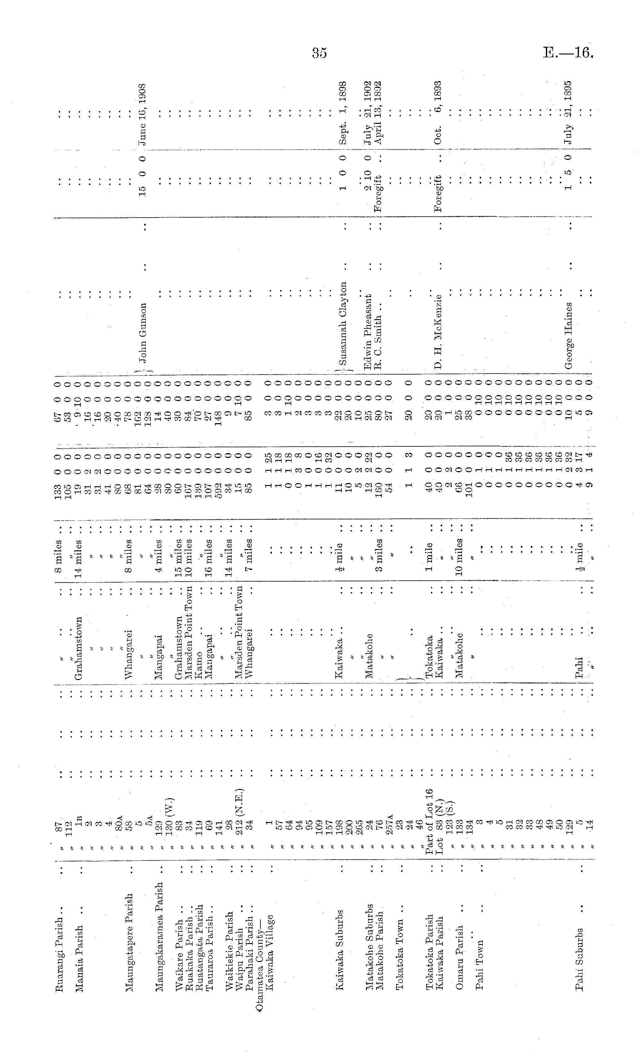 Ruarangi Parish .. Manaia Parish Maungatapere Parish Maungakaramea Parish .. „ 87 „ 112 1b 2 "„ 3 4 „ 80a „ 58 „ 5 5a „ 129 „ 130 (W.) „ 83 „ 34 „ 119 „ 69 „ 141 „ 28 „ 212 (N.E.) „ 34 .. Grahamstown .. I Whangarei .. Mangapai .. Grahamstown .. Marsden Point Town .. Kamo .. Mangapai .. | Marsden Point Town .. ; Whangarei 8 miles .. 14 miles .. I 8 miles .. | „ .. 4 miles .. 133 0 0 105 0 0 19 0 0 31 2 0 31 2 0 41 0 0 80 0 0 68 0 0 81 0 0 64 0 0 2S 0 0 80 0 0 60 0 0 107 0 0 139 0 0 107 0 0 592 0 0 34 0 0 15 0 0 85 0 0 67 0 0 53 0 0 ■ 9 10 0 16 0 0 '16 0 0 20 0 0 • 40 0 0 78 0 0 162 0 0 12s 0 0 14 0 0 40 0 0 30 0 0 84 0 0 70' 0 0 27 0 0 148 0 0 9 0 0 7 10 0 85 0 0 '- .John Gunson ) 15 0 0 June 16, 190S Waikare Parish Ruakaka Parish Ruatangata Parish Tauraroa Parish 15 miles .. 10 miles .. i 16 miles .. Waikiekie Parish Waipu Parish Parahaki Parish Otamatea County — Kaiwaka Village 14 miles .. 7 miles .. Kaiwaka Suburbs 1 „ 57 „ 64 „ 94 „ 95 „ 109 „ 157 „ 198 „ 200 „ 265 „ 24 „ 76 „ 257a „ 23 „ 24 „ 46 Part of Lot 16 Lot 83 (N.) „ 123 (S.) „ 133 „ 134 3 4 ,, 5 „ 31 „ 32 „ 33 „ 48 „ 49 „ 50 „ 129 5 „ 14 .. Kaiwaka .. .. Matakohe .. Tokatoka .. Kaiwaka .. .. Matakohe .. Pahi .. • • .. \ mile 1 1 25 1 1 18 0 1 18 0 3 8 10 0 1 0 16 1 0 32 11 0 0 10 0 0 5 2 0 12 2 22 160 0 0 54 0 0 3 0 0 3 0 0 1 10 0 2 0 0 3 0 0 3 0 0 3 0 0 22 0 0 20 0 0 10 0 0 25 0 0 80 0 0 27 0 0 i I - Susannah Clayton J 1 0 0 Sept. 1, 1898 i Matakohe Suburbs Matakohe Parish 1 3 miles .. Edwin Pheasant R. C. Smith .. 2'l0 0 July 21, 1902 Foregift .. April 13, 1892 Tokatoka Town 1 113 20 0 0 Tokatoka Parish Kaiwaka Parish 1 mile 40 0 0 40 0 0 2 2 0 66 0 0 101 0 0 0 10 0 10 0 10 0 1 36 0 1 36 0 1 36 0 1 38 0 1 36 0 1 36 0 2 32 4 3 17 9 14 20 0 0 20 0 0 10 0 25 0 0 38 0 0 0 10 0 0 10 0 0 10 0 0 10 0 0 10 0 0 10 0 0 10 0 0 10 0 0 10 0 10 0 0 5 0 0 9 0 0 D. H. McKenzie ' I Foregift .. Oct, 6, 1893 Omaru Parish 10 miles .. •• I " i Pahi Town " " '" I i I I Pahi Suburbs ..- I l"5 0 : July 21, 1895 J mile George Haines "" I I
