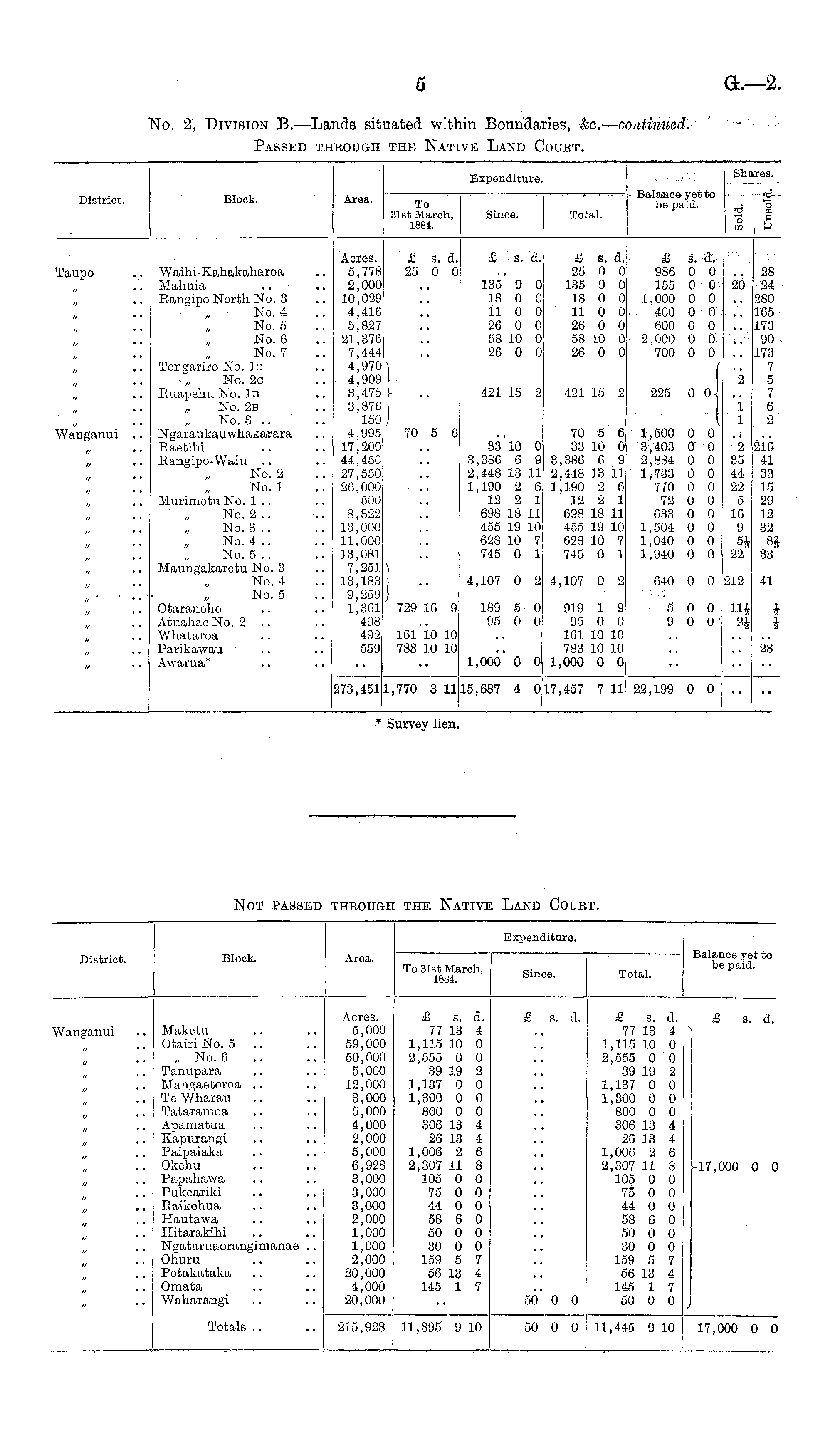 No. 2, Division B.—Lands situated within Boundaries, &c. — co ntinued. Passed through the Native Land Court.