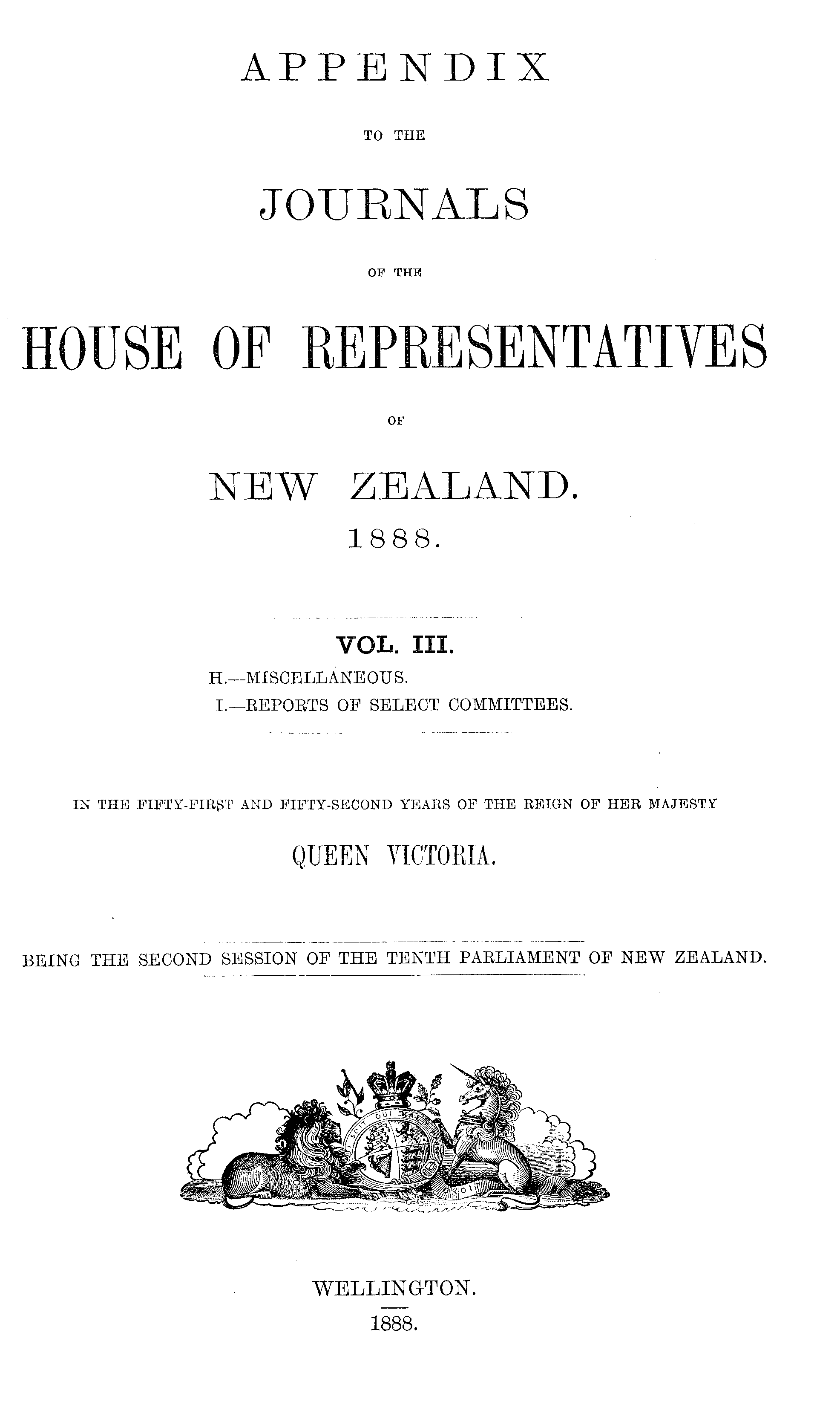 APPENDIX TO THE JOURNALS OF THE HOUSE OF REPRESENTATIVES OF NEW ZEALAND. 1888.