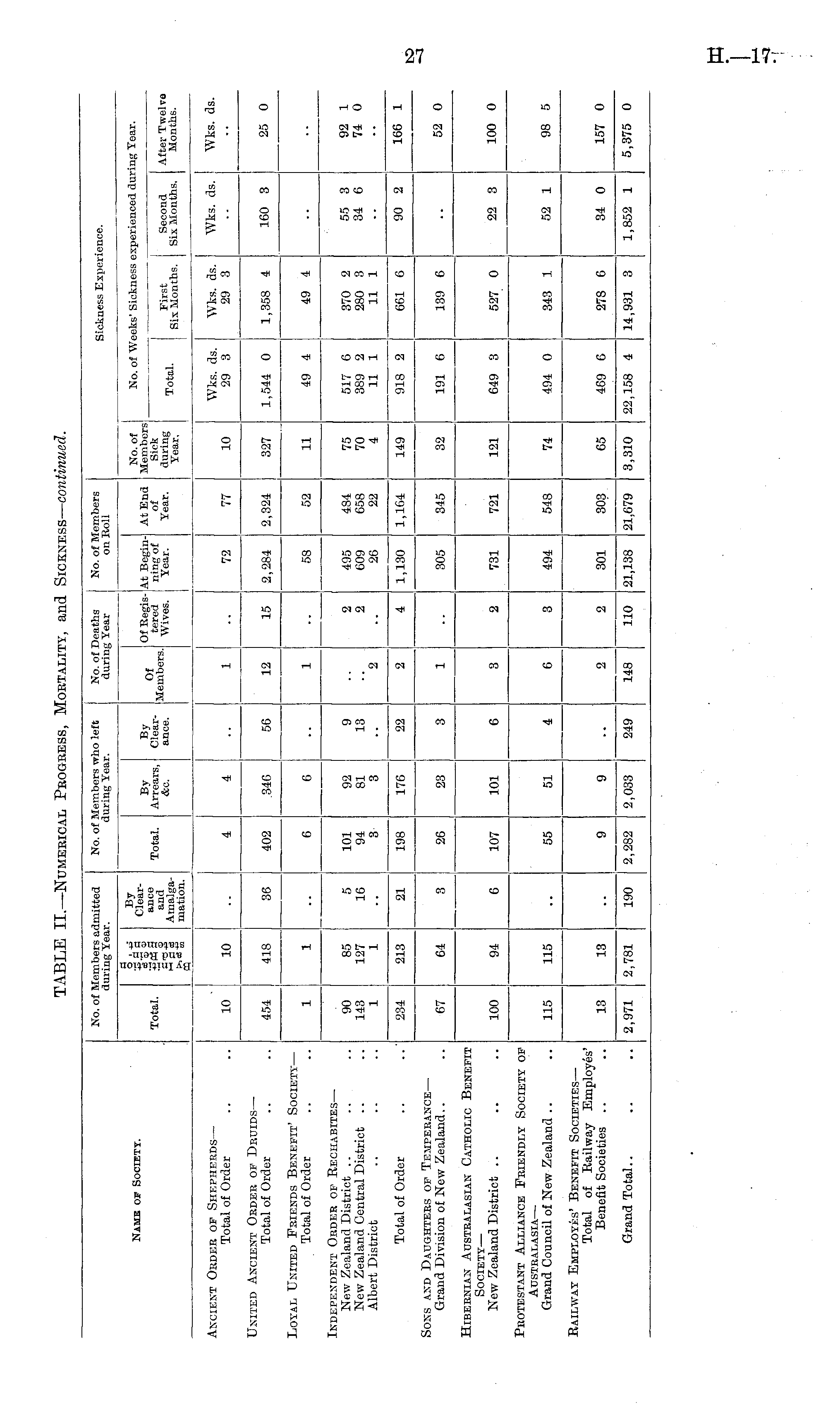 TABLE II.—Numerical Progress, Mortality, and Sickness— continued.