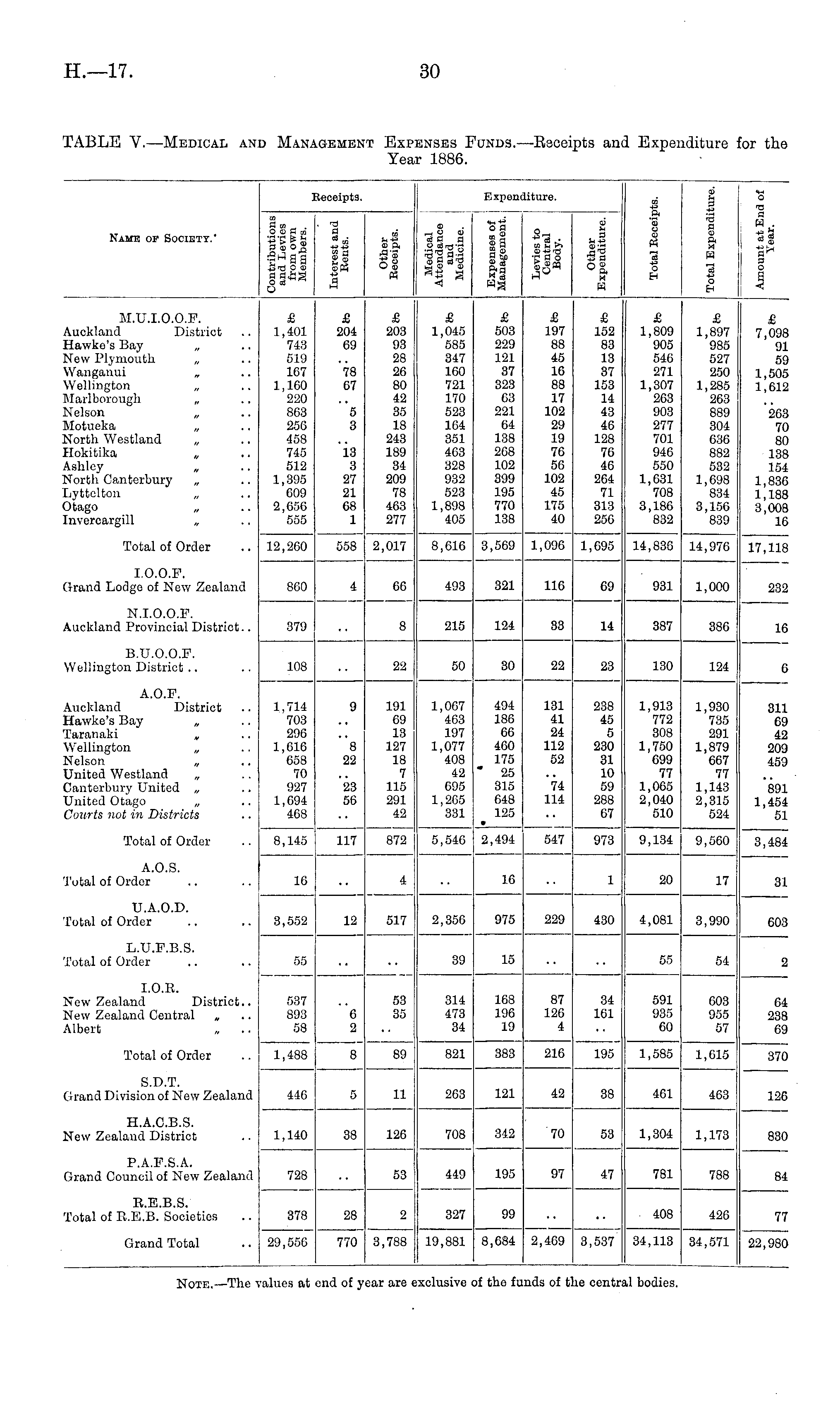 TABLE V.—Medical and Management Expenses Funds.—Receipts and Expenditure for the Year 1886.
