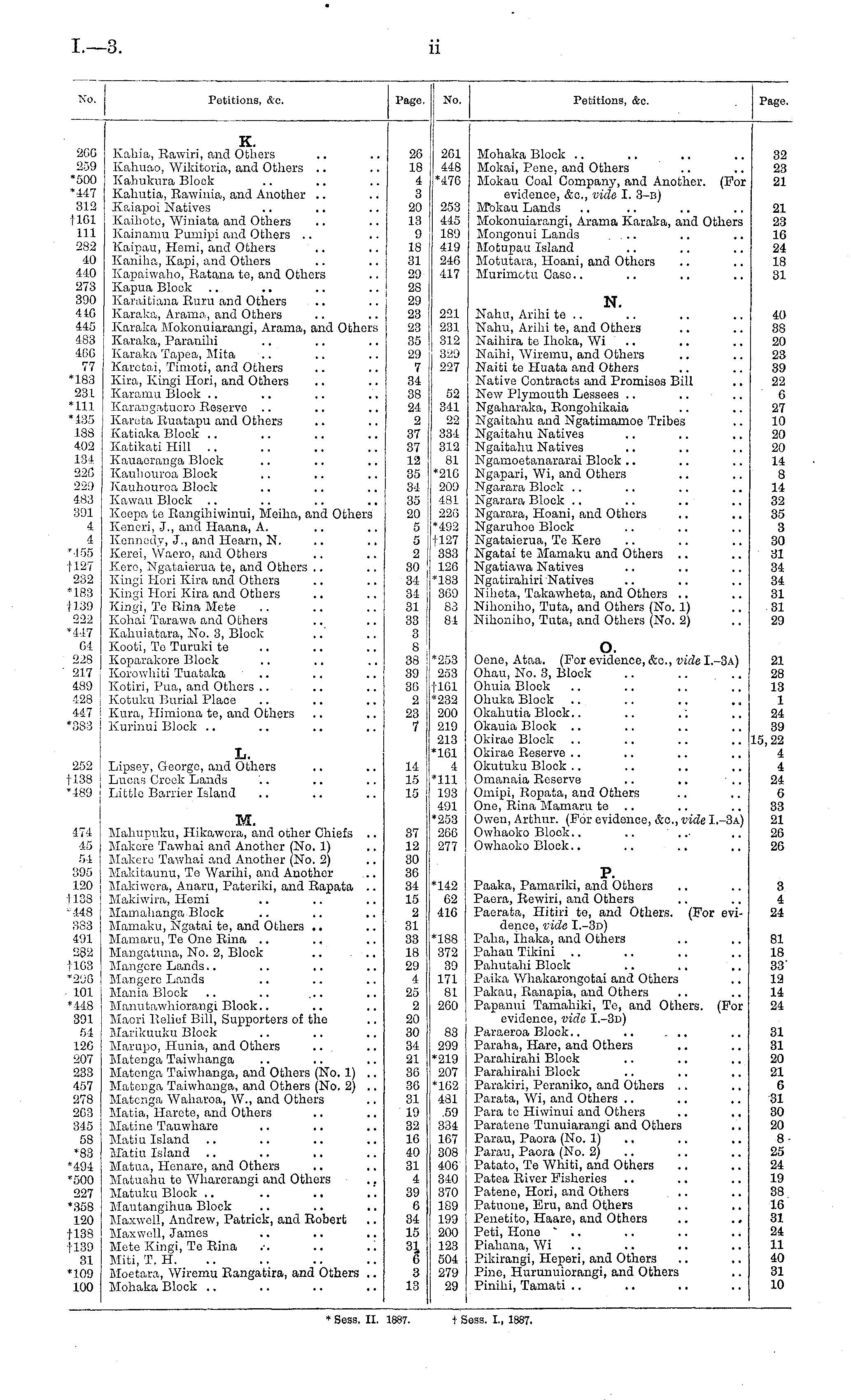 No. Petitions, &c. Page. 206 259 *500 *447 312 1101 111 282 40 440 273 390 446 445 483 460 77 *183 231 •111 •135 188 402 134 22C 229 483 391 4 4 •4SS tl27 232 *183 tl39 222 *447 01 228 217 489 428 447 •383 K. Kahia, Eawiri, and Others Kahuao, Wikitoria, and Others Kahukura Block Kahutia, Bawiuia, and Another Kaiapoi Natives Kaihote, Winiata and Others Kainamu Pumipi and Others Kaipau, Hemi, and Others Kaniha, Kapi, and Others Kapaiwaho, Eatana te, and Others Kapua Block Karaitiana Euru and Others Karaka, Aroma, and Others Karaka Mokonuiarangi, Arama, and Others Karaka, Parauihi Karaka Tapea, Mita Karotai, Timoti, and Others Kira, Kingi Hori, and Others Karamu Block .. Karangatuoro Eeserve Kareta Euatapu and Others Katiaka Block Katikati Hill Kauaeranga Block Kauhouroa Block Kauhouroa Block Kawau Block Keepa to Eangihiwinui, Moiha, and Others Keneri, J., and Haana, A. Kennedy, J., and Hoarn, N. Kerei, Waero, and Others Kero, Ngataierua te, and Others Kingi Hori Kira and Others Kingi Hori Kira and Others Kingi, To Eina Mete Kohai Tarawa and Others Kahuiatara, No. 3, Block Kooti, Te Turuki to Koparakore Block Korowhiti Tuataka Kotiri, Pua, and Others Kotuku Burial Place Kura, Himiona to, and Others Kurinui Block .. 26 L8 4 3 20 18 9 18 31 29 28 29 28 23 35 29 7 34 38 24 2 37 87 L2 35 34 35 20 5 5 2 30 34 31 31 33 3 8 38 39 30 2 23 7 252 1138 *489 L. Lipsey, George, and Others Lucas Creek Lands Little Barrier Island 1 ! 15 15 474 45 54 395 120 1138 ■148 383 491 282 1163 *296 101 •448 391 54 126 207 233 457 278 203 345 58 *83 •494 •500 227 •358 120 1138 1139 31 •109 100 M. Mahupuku, Hikawera, and other Chiefs .. Makero Tawhai and Another (No. 1) Makero Tawhai and Another (No. 2) Makitaunu, Te Warihi, and Another Makiwera, Anaru, Pateriki, and Kapata .. Makiwira, Hemi Mamahanga Block Mamaku, Ngatai te, and Others Mamaru, Te Ono Eina Mangatuna, No. 2, Block .. ... Mangere Lands Mangere Lands Mania Block Manutawhiorangi Block.. Maori Belief Bill, Supporters of the Marikuuku Block Marupo, Hunia, and Others ... Matenga Taiwhanga Matcnga Taiwhanga, and Others (No. 1) .. Matenga Taiwhanga, and Others (No. 2) .. Matcnga Waharoa, W., and Others Matia, Harete, and Others Matine Tauwharo Matiu Island Matiu Island Matua, Henare, and Others Matuahu te Wharorangi and Others Matuku Block Mautangihua Block Maxwell, Andrew, Patrick, and Eobert Maxwell, James Mete Kingi, Te Eina Miti, T. H. Moetara, Wiremu Eangatira, and Others .. Mohaka Block 37 12 30 36 34 15 2 31 33 18 29 4 25 2 20 30 34 21 36 36 31 19 82 16 40 31 4 39 6 34 15 81 o 3 13