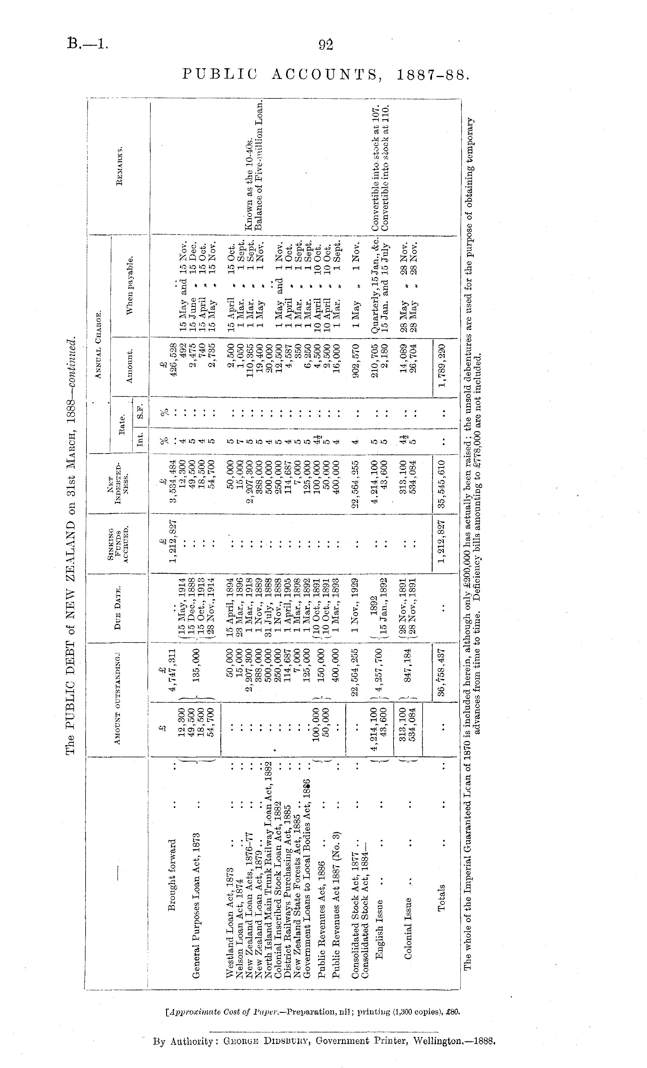 The PUBLIC DEBT of NEW ZEALAND on 31st March, 1888— continued.