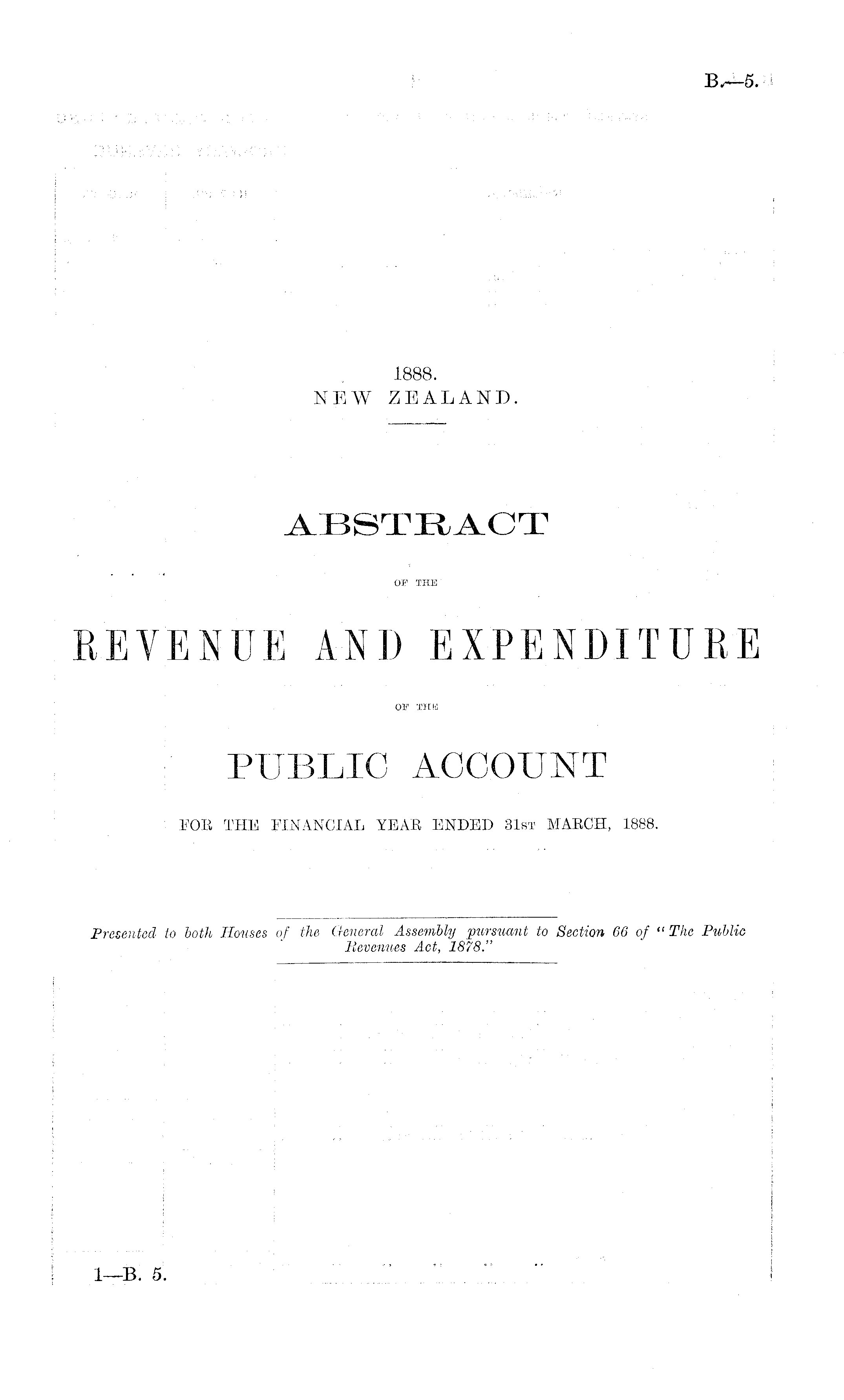 ABSTRACT OF THE REVENUE AND EXPENDITURE OF THE PUBLIC ACCOUNT FOR THE FINANCIAL YEAR ENDED 31st MARCH, 1888.