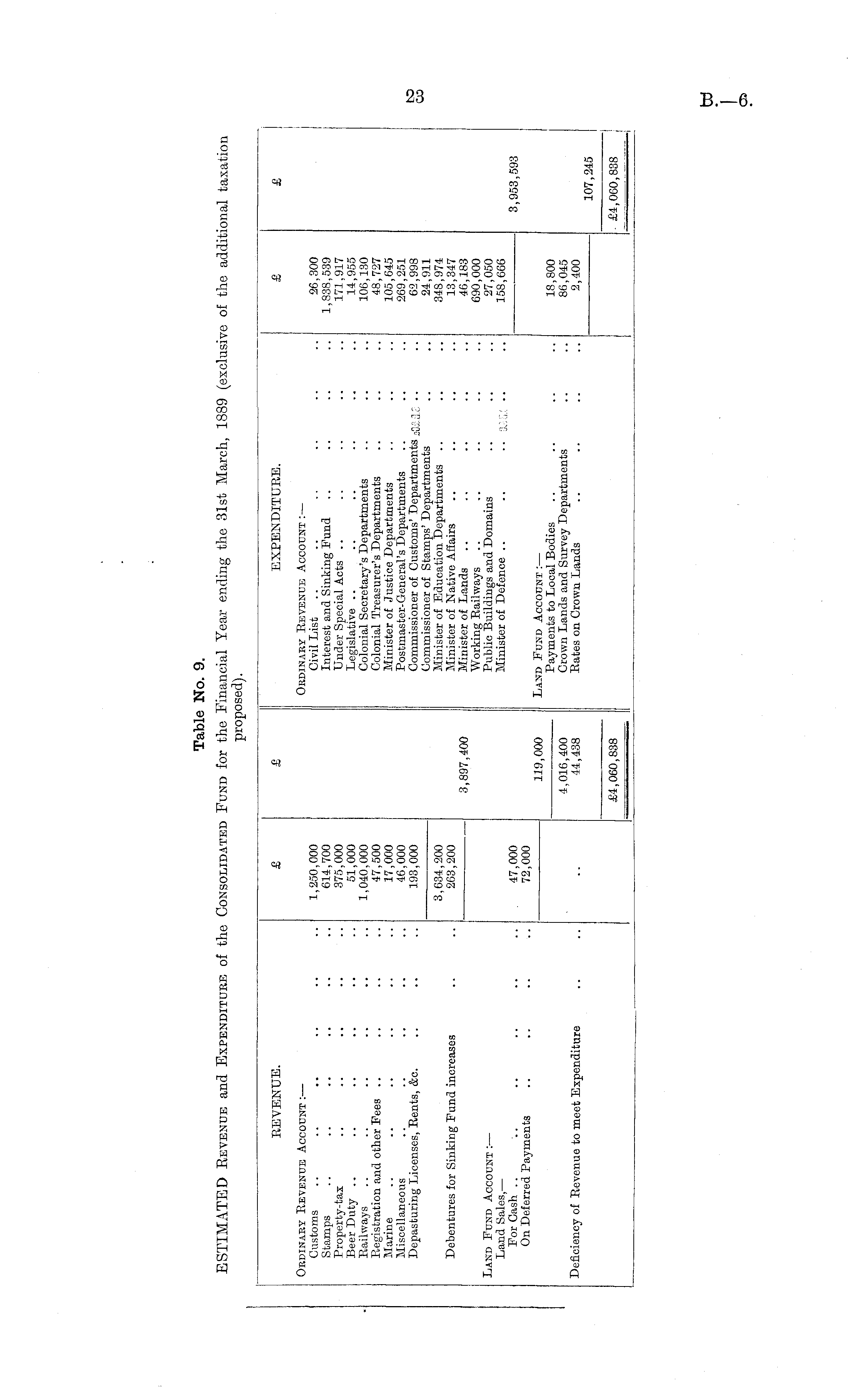 Table No. 9. ESTIMATED Revenue and Expenditure of the Consolidated Fund for the Financial Year ending the 31st March, 1889 (exclusive of the additional taxation proposed).