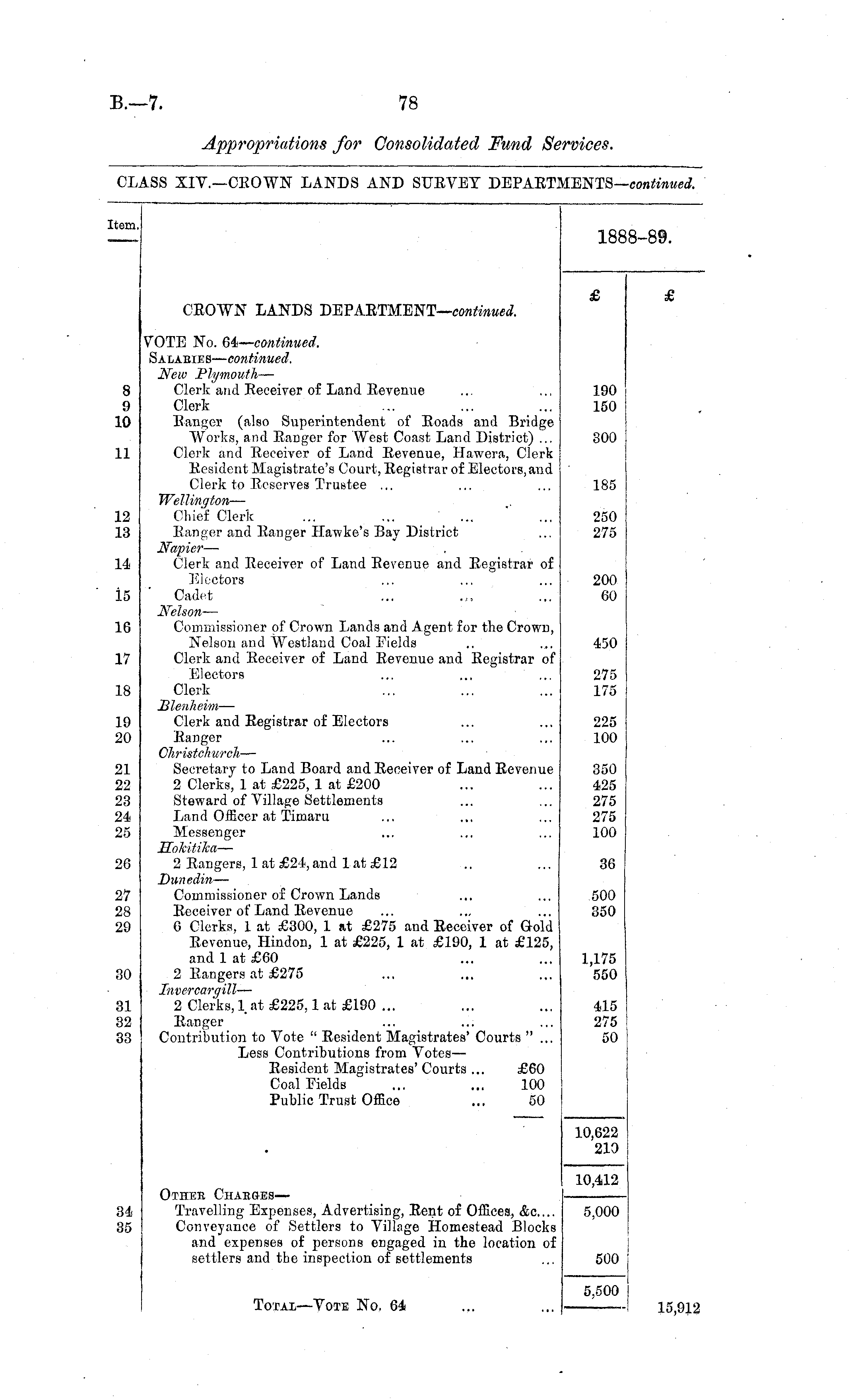 CLASS XIV.—CROWN LANDS AND SURVEY DEPARTMENTS— continued.