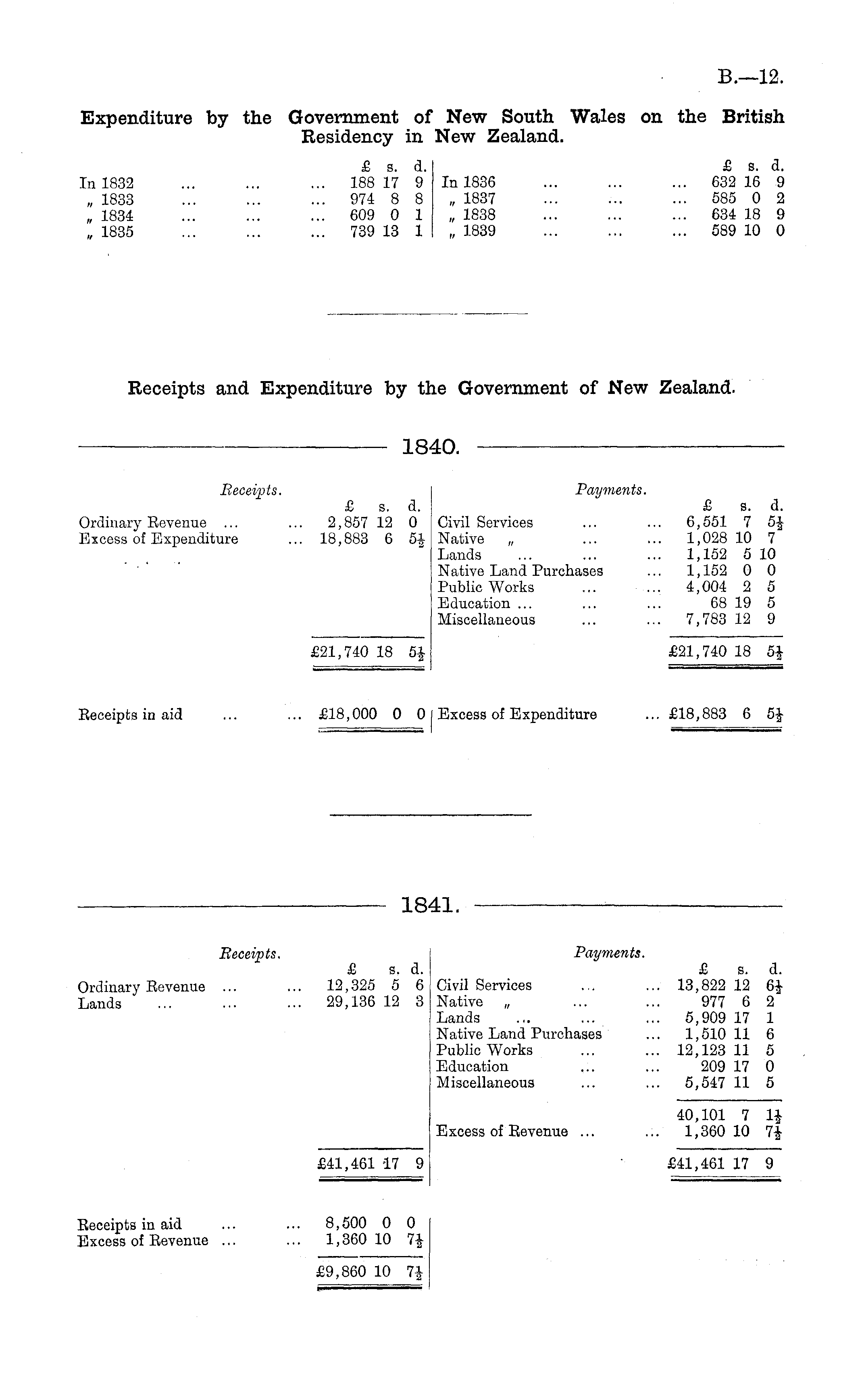 Expenditure by the Government of New South Wales on the British Residency in New Zealand. £ s. d. £ s. d. In 1832 ... ... ... 188 17 9 In 1836 ... ... ... 632 16 9 „ 1833 974 8 8 „ 1837 585 0 2 „ 1834 609 0 1 „ 1838 634 18 9 „ 1835 ... ... ... 739 13 1 „ 1839 ... ... ... 589 10 0