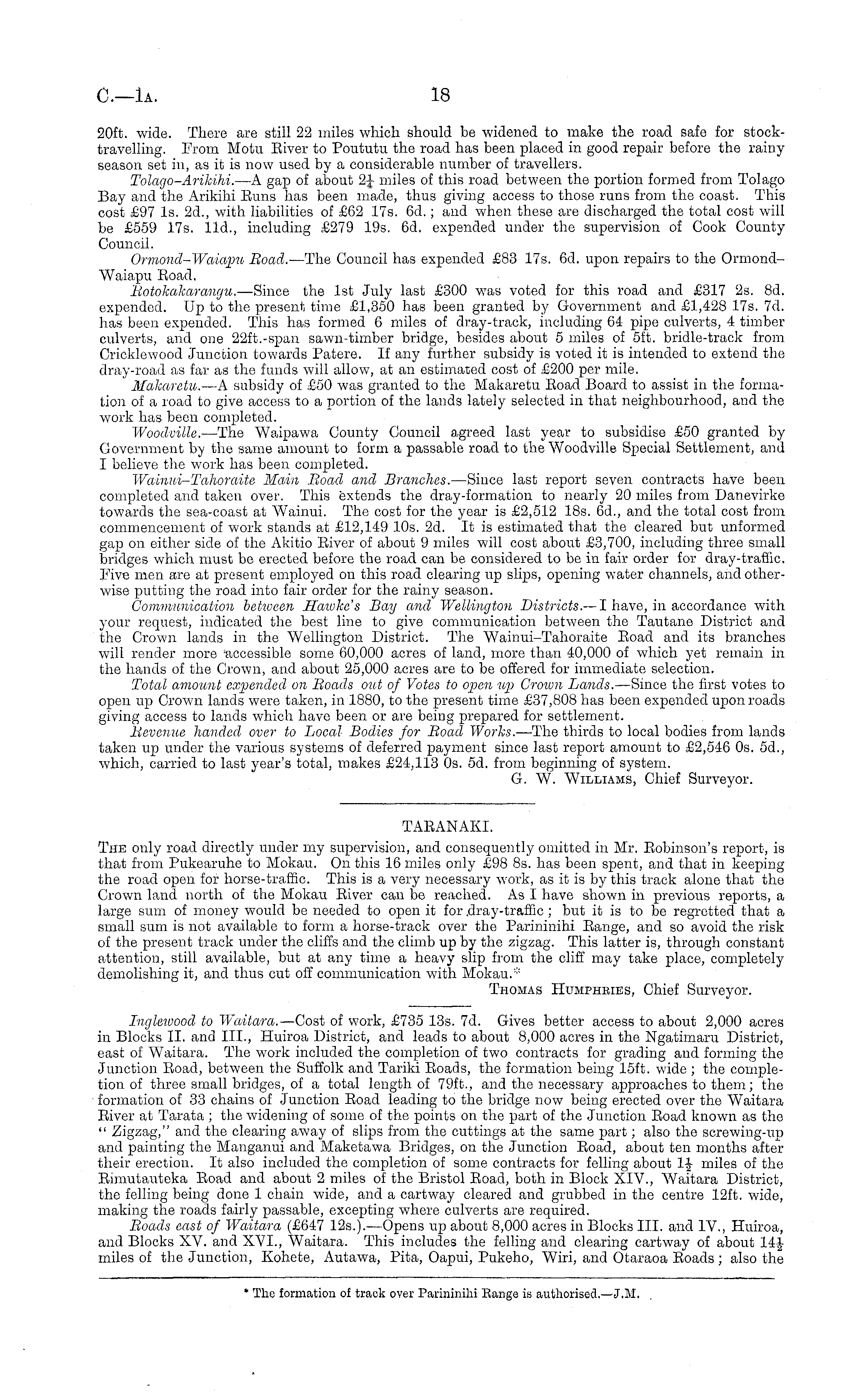 * The formation of track over Parininihi Bango is authorised.—J.M.
