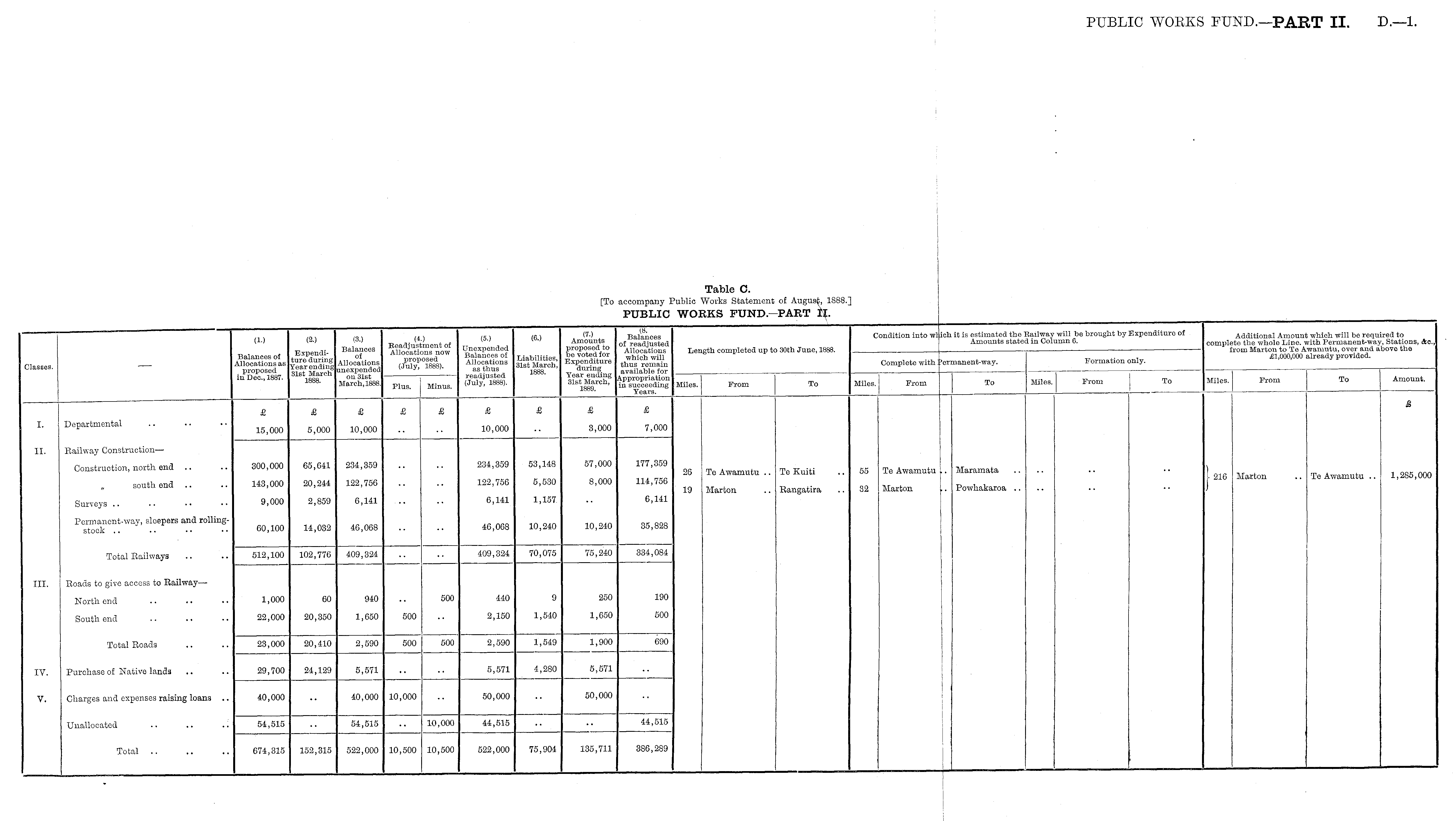 Table C. [To accompany Public Works Statement of August, 1888.] PUBLIC WORKS FUND.—PART II.