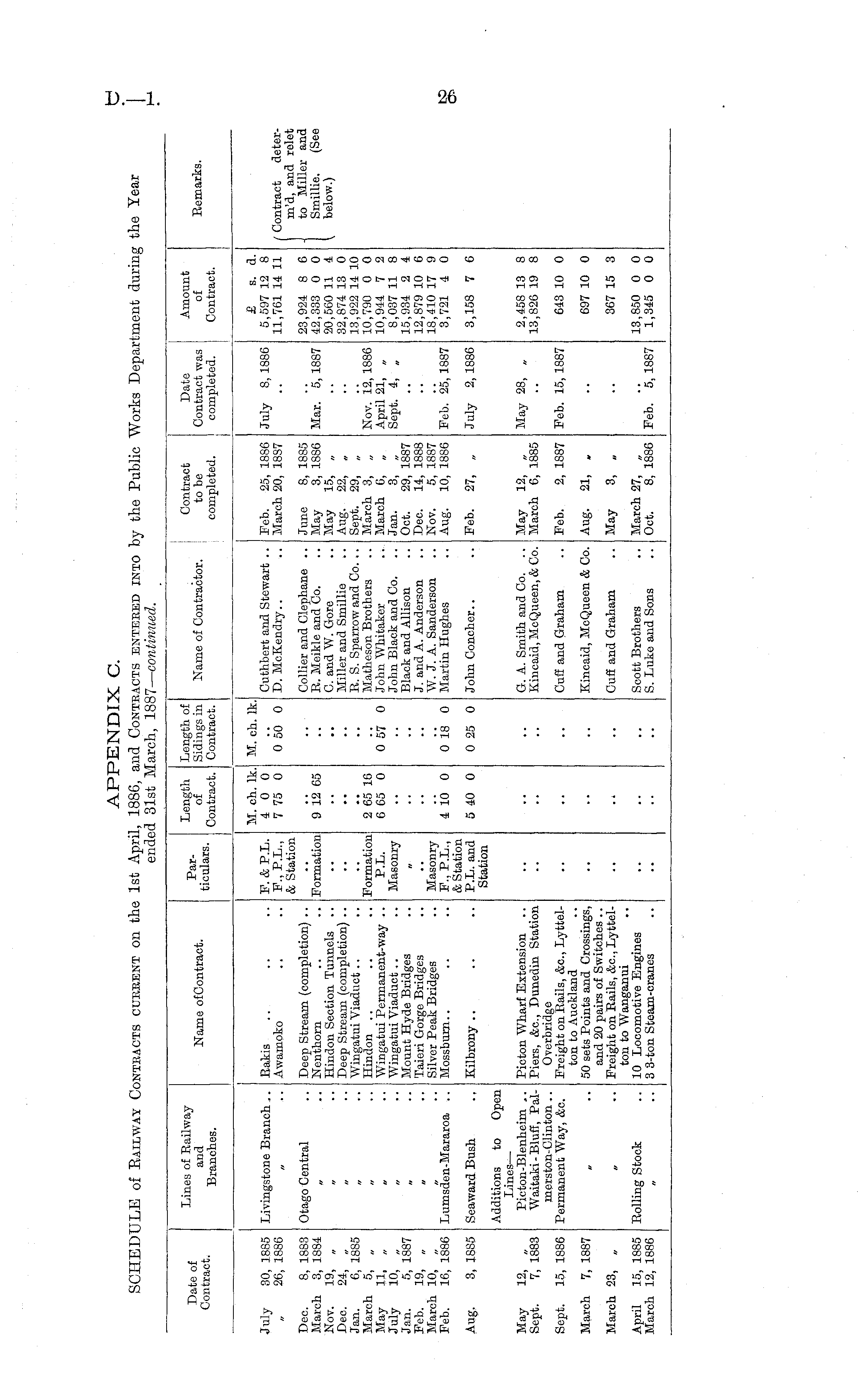 APPENDIX C. SCHEDULE of Railway Contracts current on the 1st April, 1886, and Contracts entered into by the Public Works Department during the Year ended 31st March, 1887— continued.