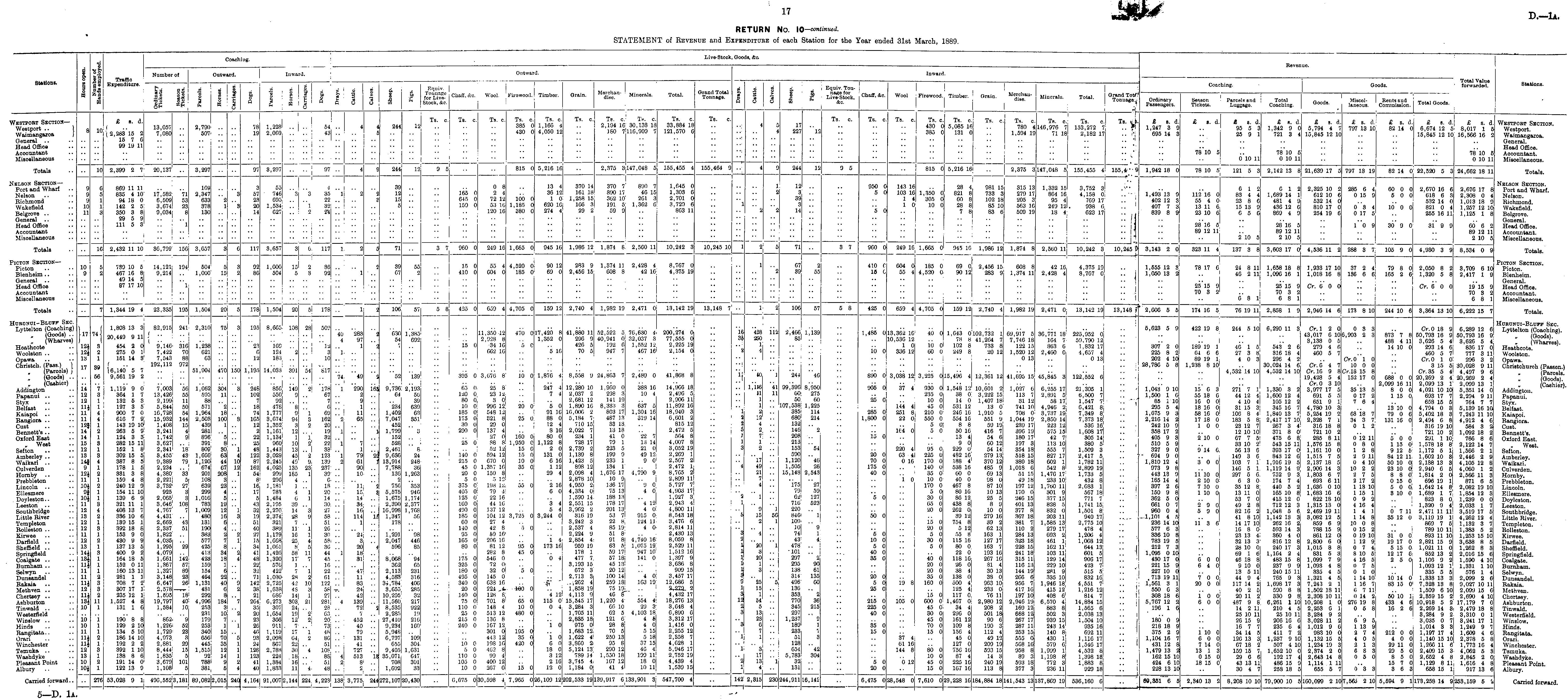 17 RETURN No. 10-continued. STATEMENT of Revenue and Expenditure of each Station for the Year ended 31st March, 1889.