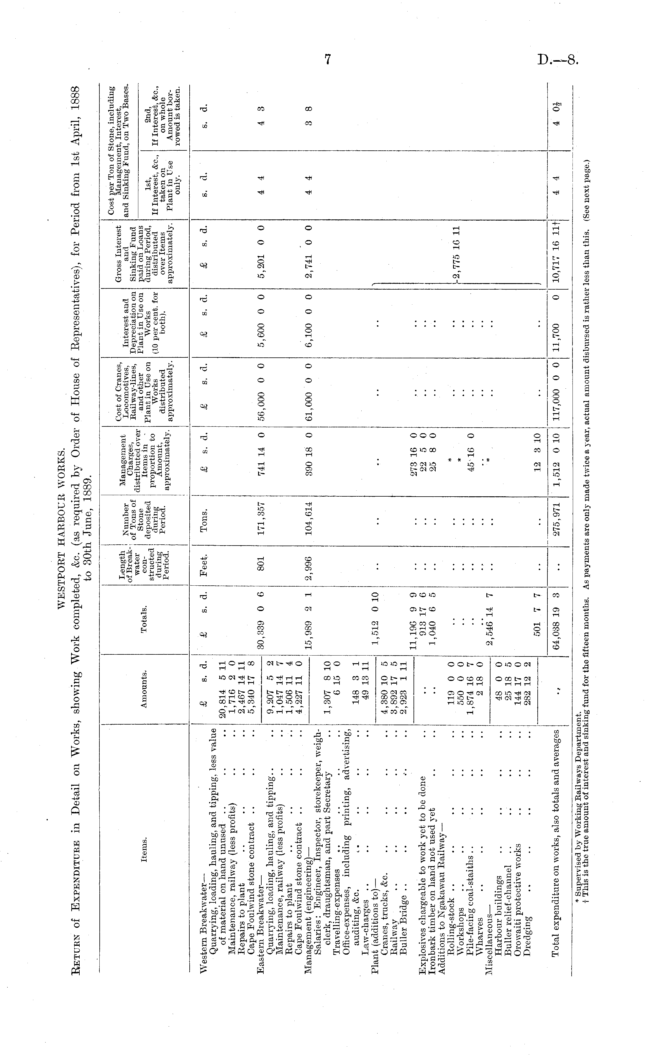 WESTPORT HARBOUR WORKS. Rbturn of Expenditure in Detail on Works, showing Work completed, &c. (as required by Order of House of Representatives), for Period from 1st April, 1888 to 30th June, 1889.