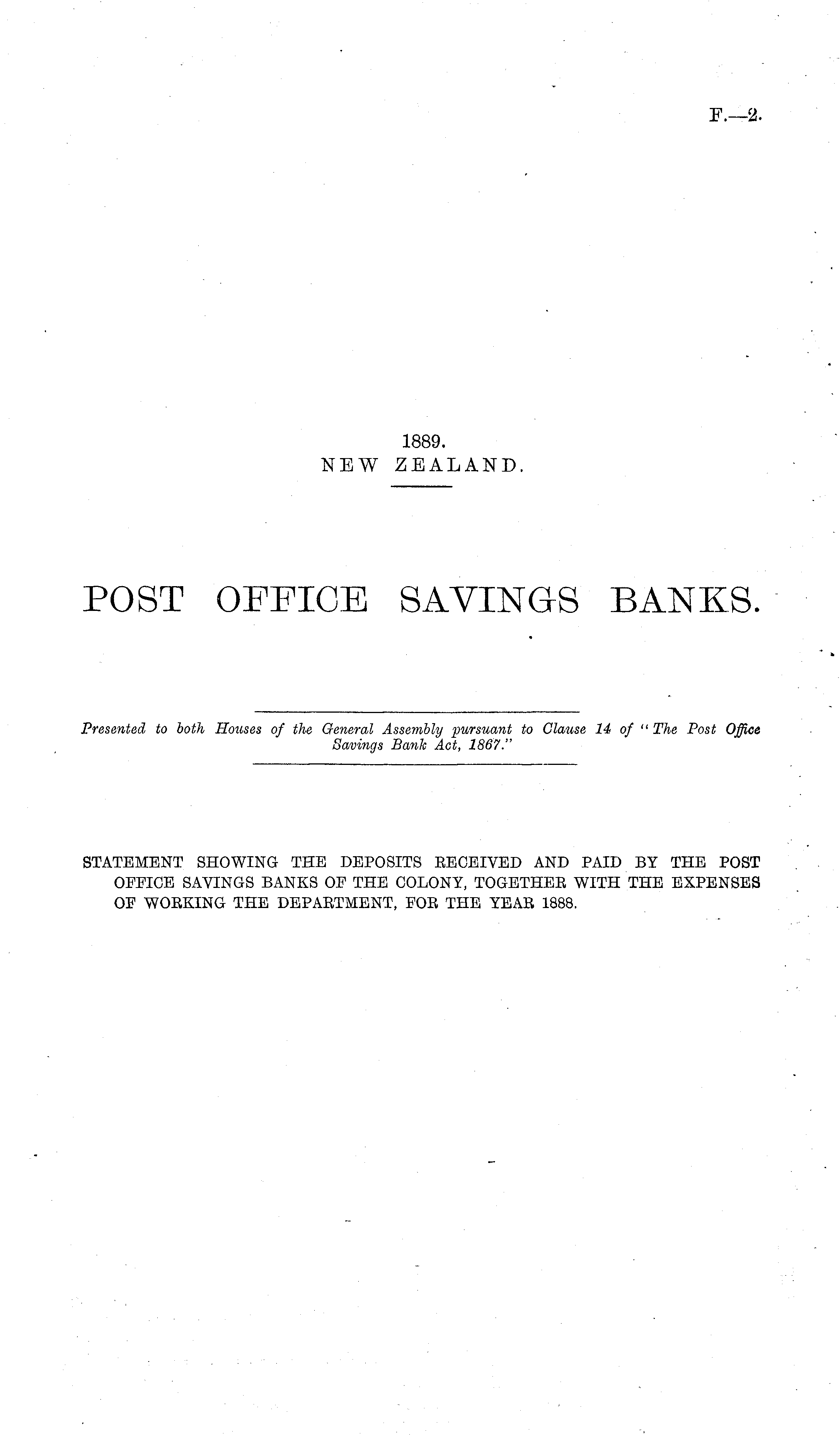 Presented to both Houses of the General Assembly pursuant to Clause 14 of " The Post Office Savings Bank Act, 1867."