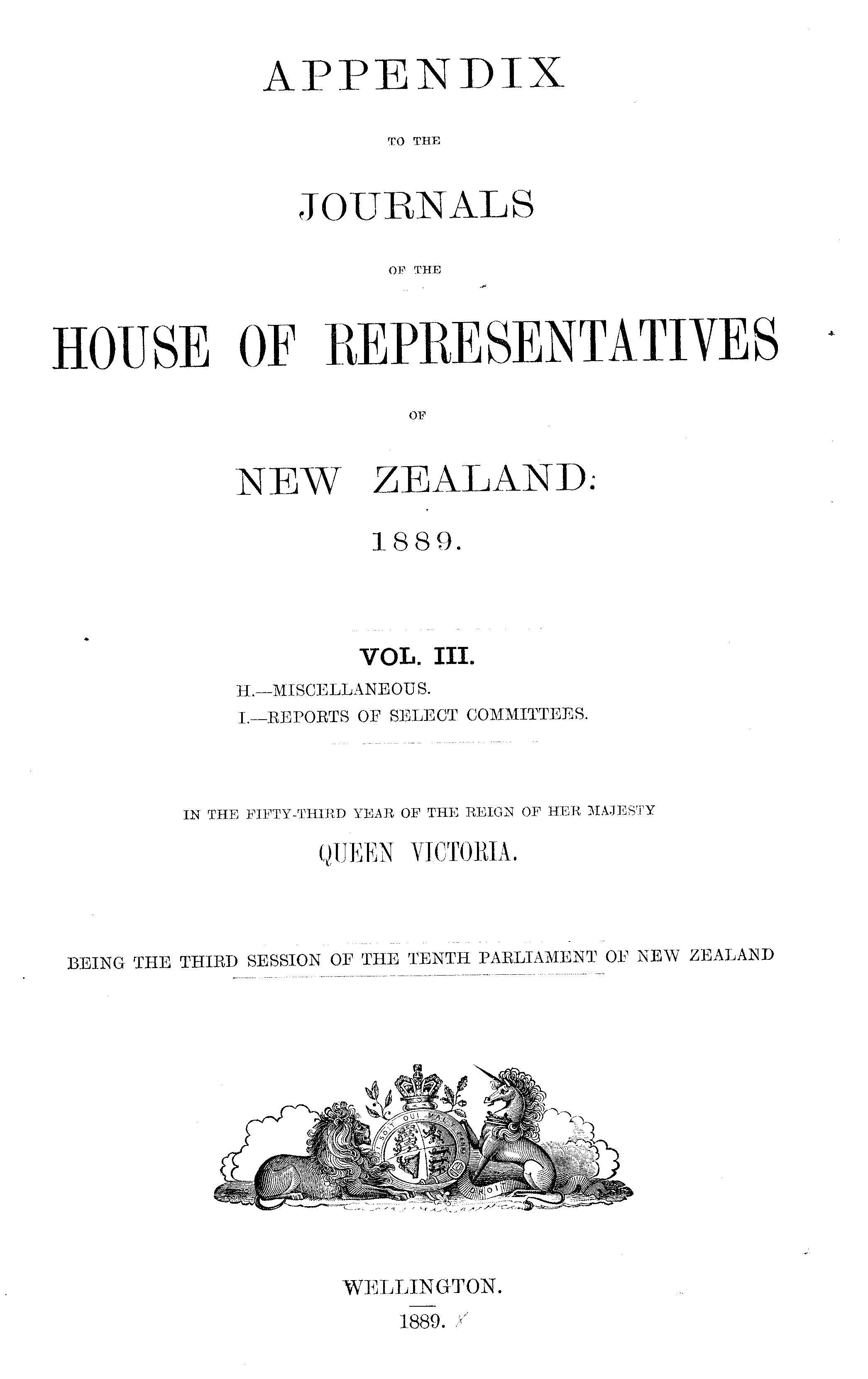 APPENDIX TO THE JOURNALS OF THE HOUSE OF REPRESENTATIVES OF NEW ZEALAND. 1889.