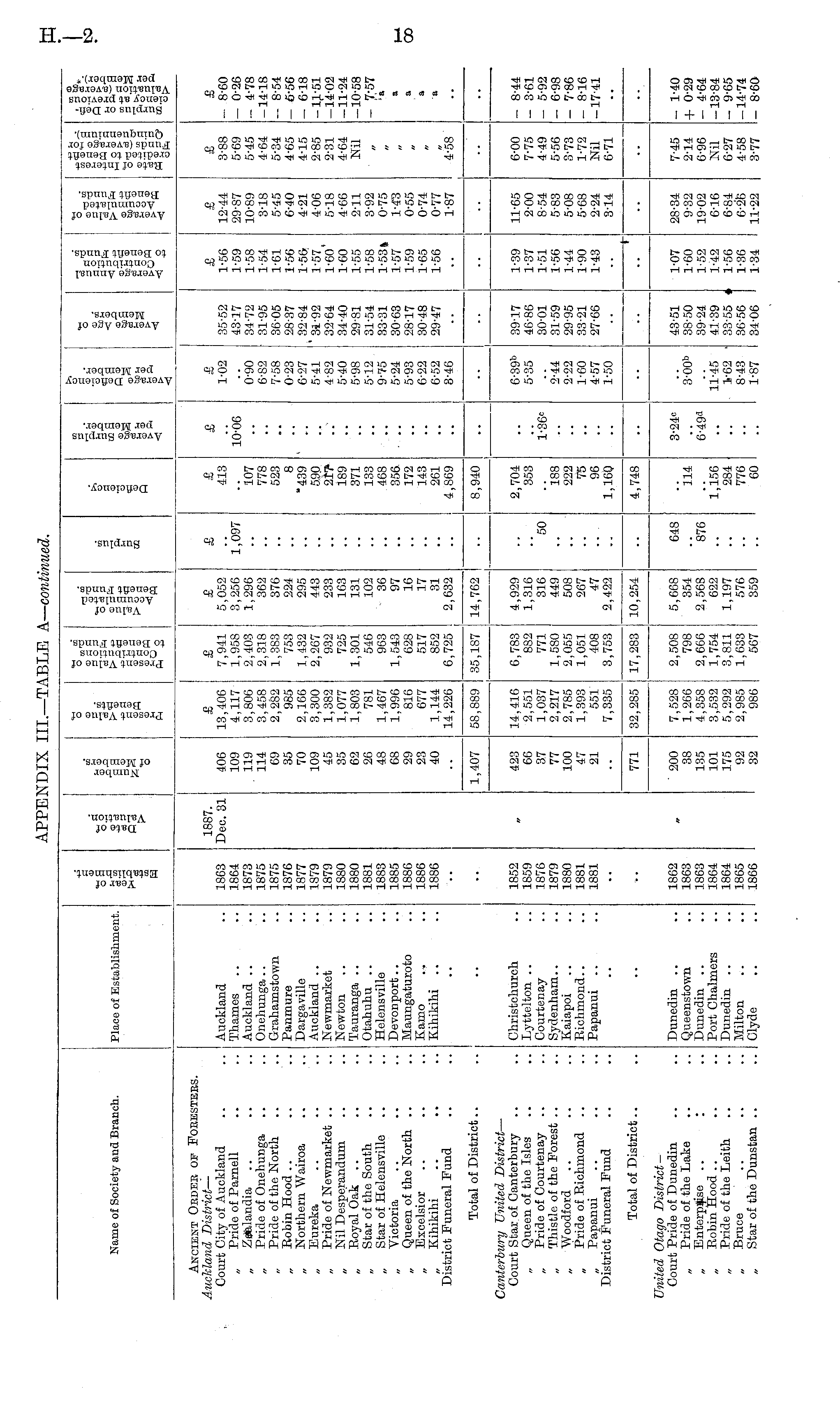 APPENDIX III.—TABLE A— continued.