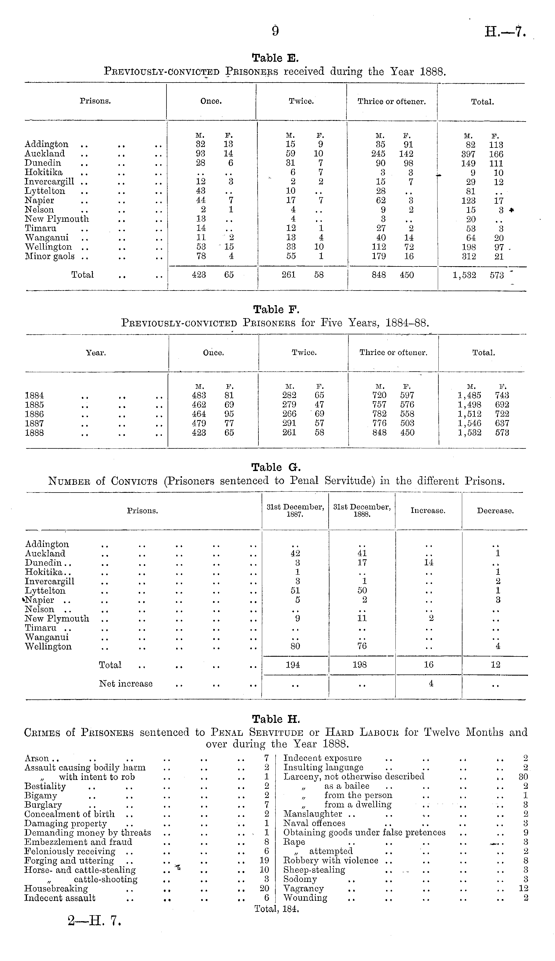 'risons. tace. 'wice. trice or 0? iener. Total. ..ddington Auckland 3unedin Hokitika .nvercargill .. jytteltpn Napier kelson STew Plymouth Kmaru vVanganui Wellington .. Minor gaols .. M. 32 93 28 12 43 44 2 13 14 11 53 78 E. 13 14 6 '3 7 1 2 15 4 M. 15 59 31 6 2 10 17 4 4 12 13 33 55 P. 9 10 7 7 2 7 1 4 10 1 M. 35 245 90 3 15 28 62 9 3 27 40 112 179 E. 91 142 98 3 7 "s 2 2 14 72 16 M. 82 397 149 9 29 81 123 15 20 53 64 198 312 F. 113 166 111 10 12 17 3 + 3 20 97 . 21 Total 423 65 261 58 848 450 1,532 573 "