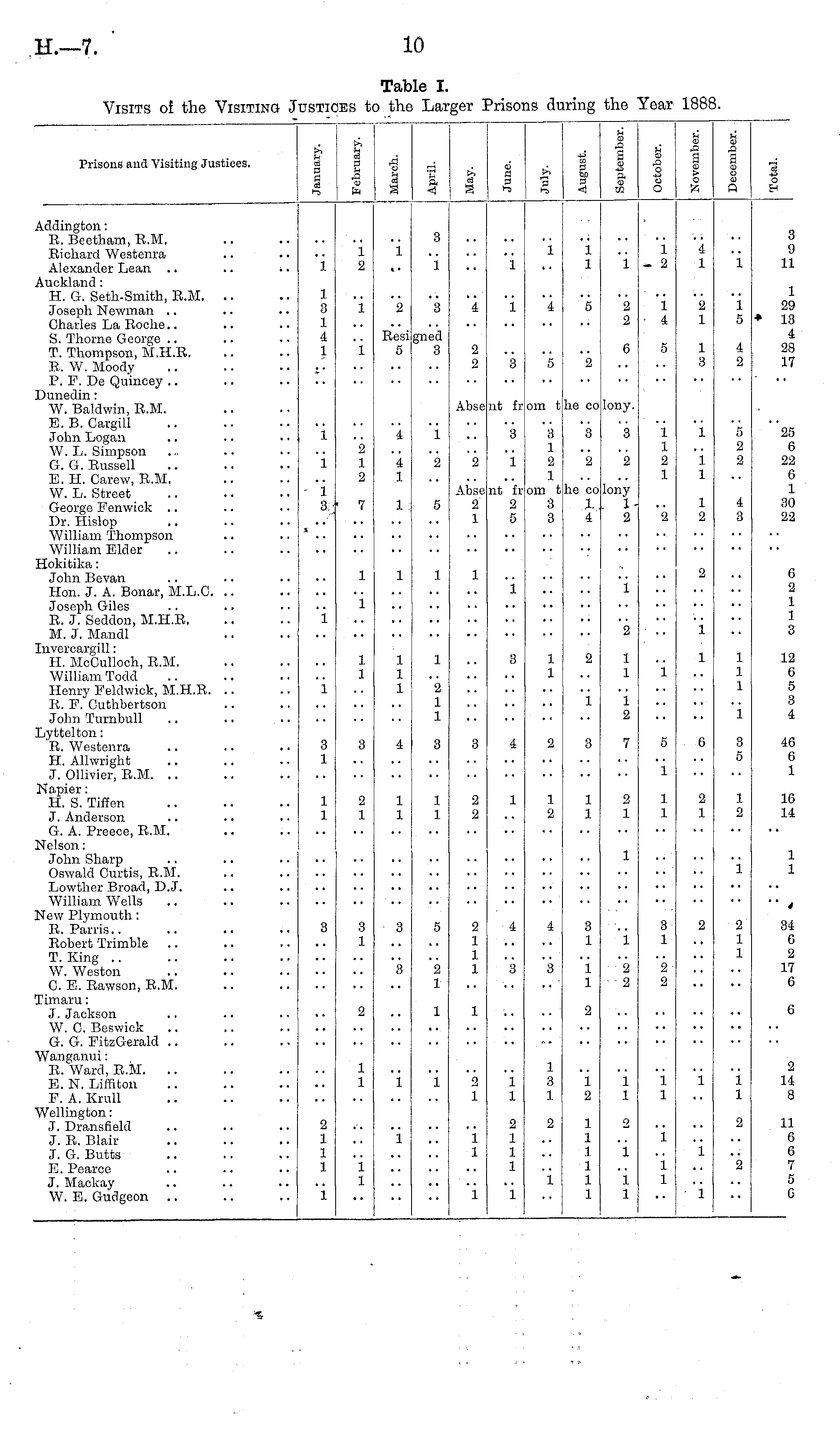 Table I. Visits of the Visiting Justices to the Larger Prisons during the Year 1888.