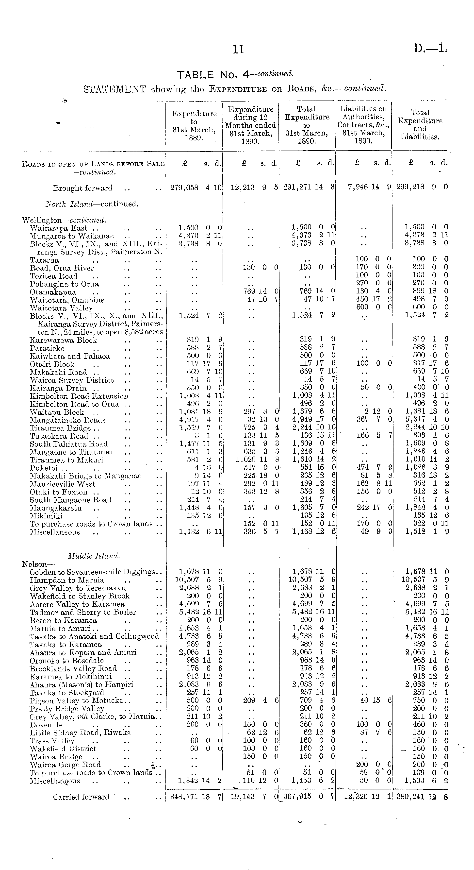 TABLE NO. 4— continued. STATEMENT showing the Expenditure on Roads, &c. — continued.