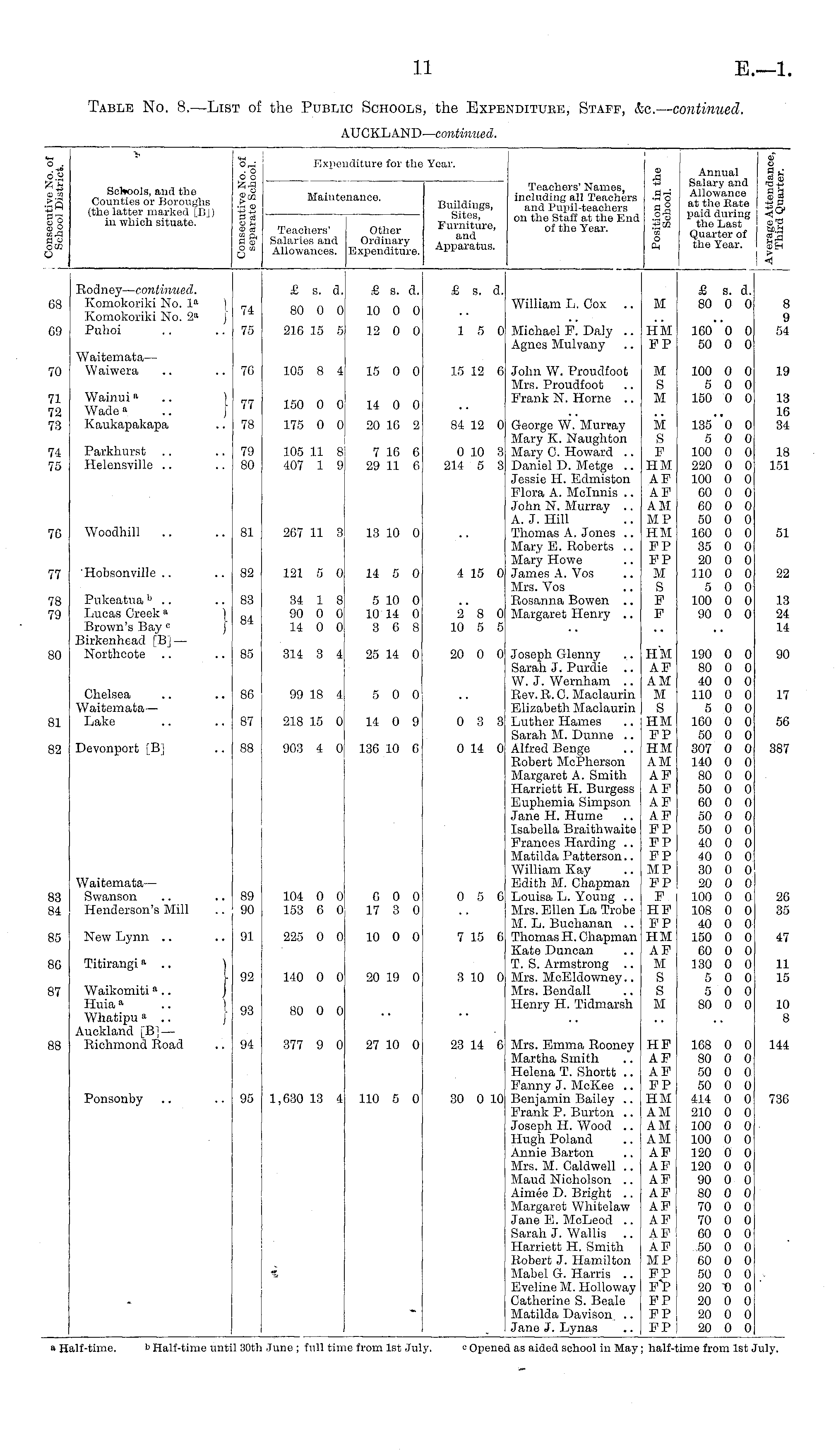 Table No. 8.—List of the Public Schools, the Expenditure, Staff, &c.— continued. AUCKLAND— continued.