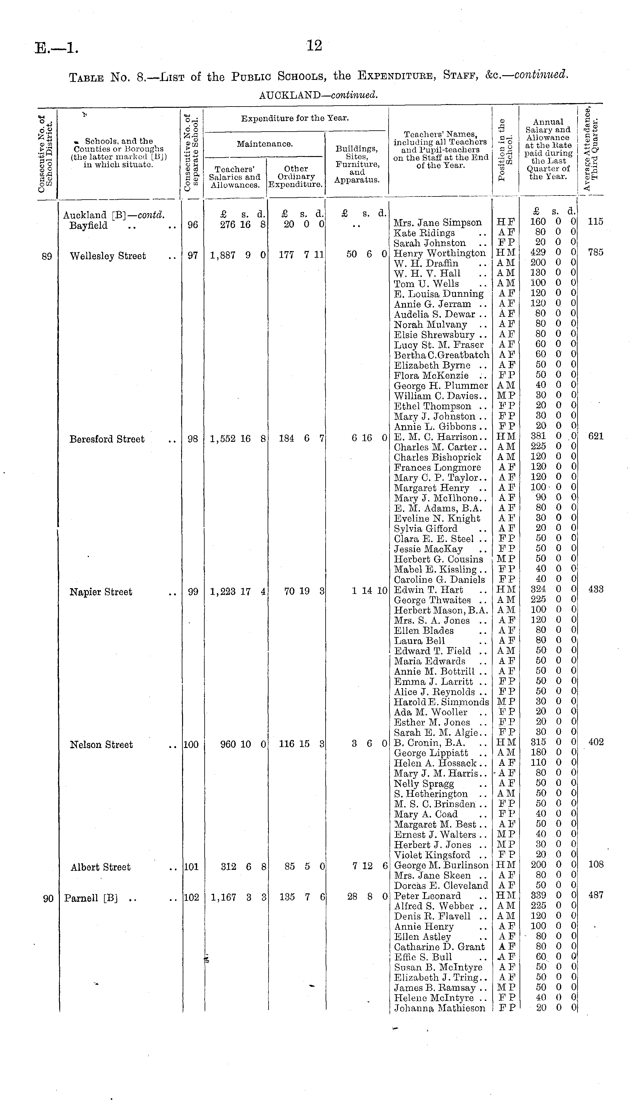 Table No. 8.—List of the Public Schools, the Expenditure, Staff, &c.— continued. AUCKLAND— continued.