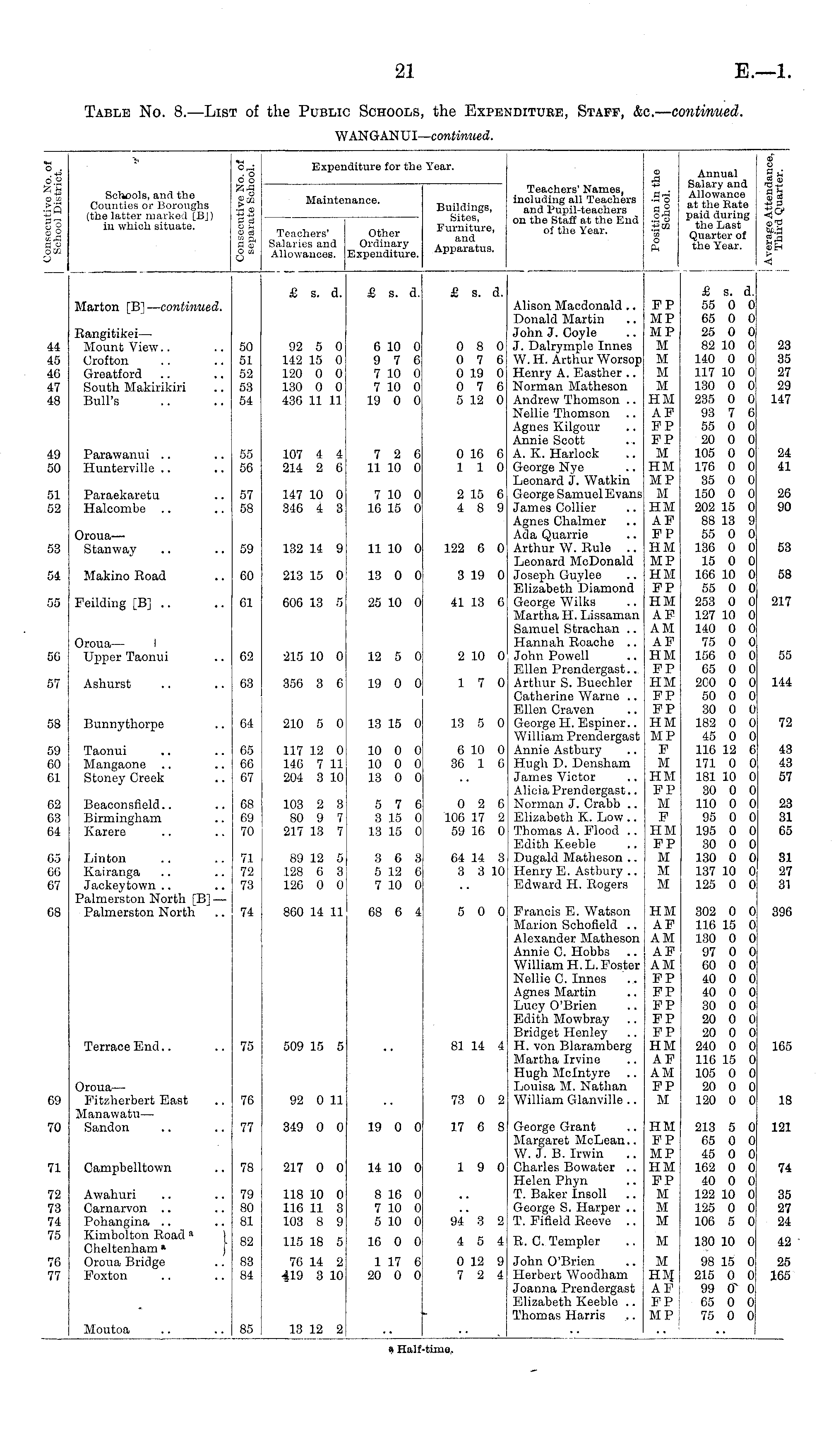 Table No. 8. —List of the Public Schools, the Expenditure, Staff, &c.— continued. WANGANUI— continued.