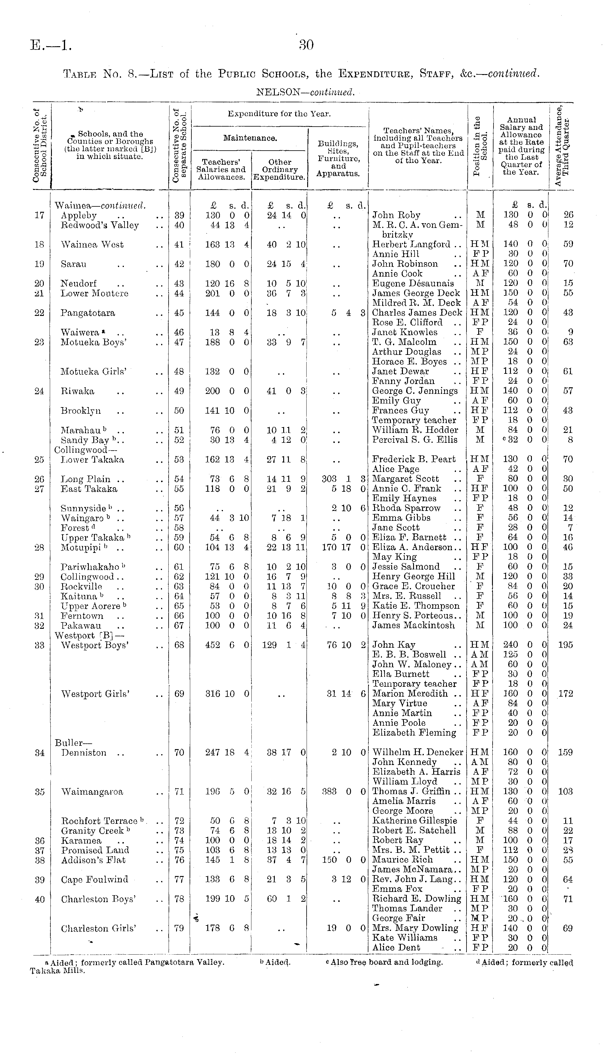 Table No. 8.—List of the Public Schools, the Expenditure, Staff, &c.— continued. NELSON—continued.