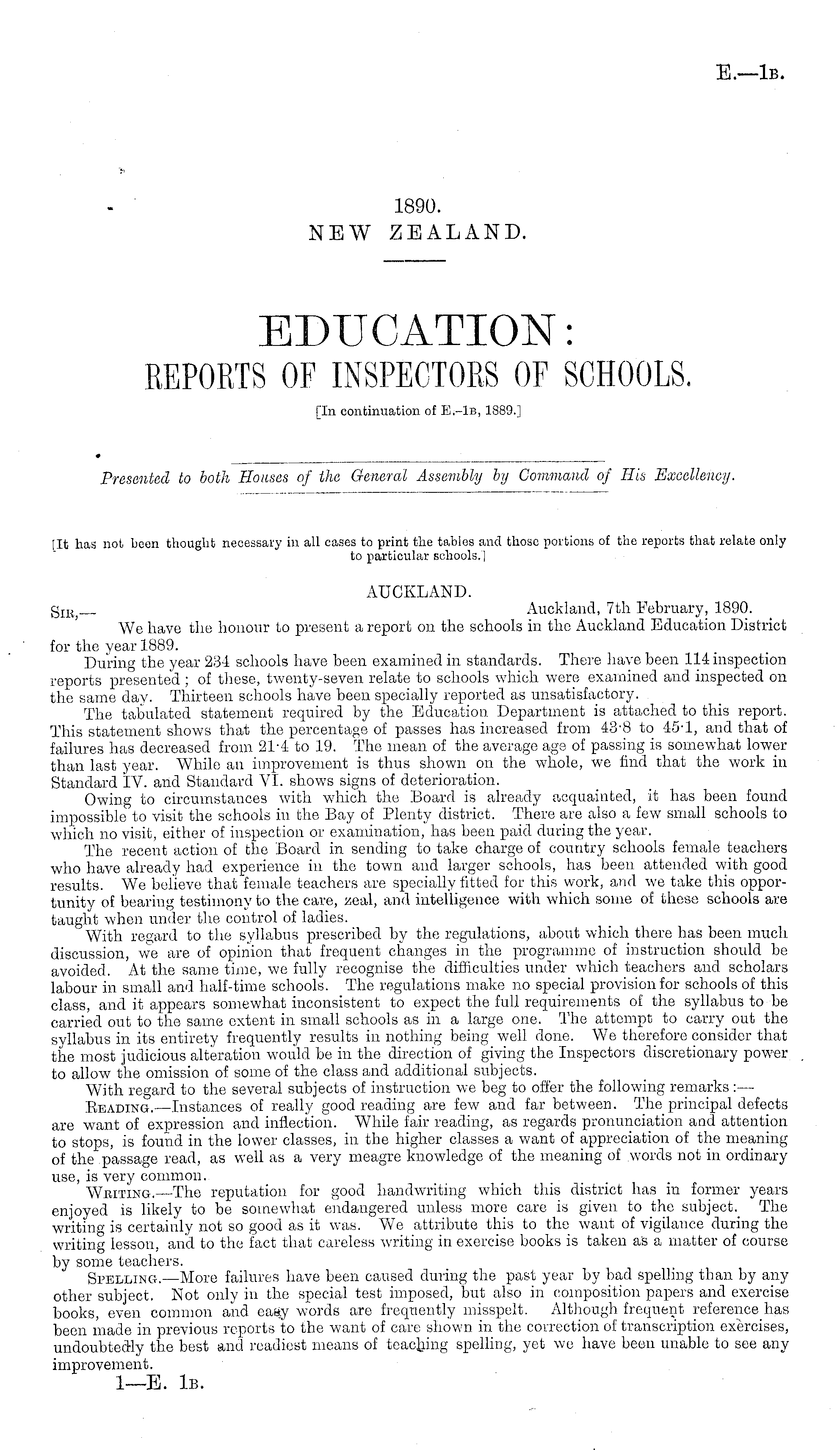 EDUCATION: REPORTS OF INSPECTORS OF SCHOOLS. [In continuation of E.-1b, 1889.]