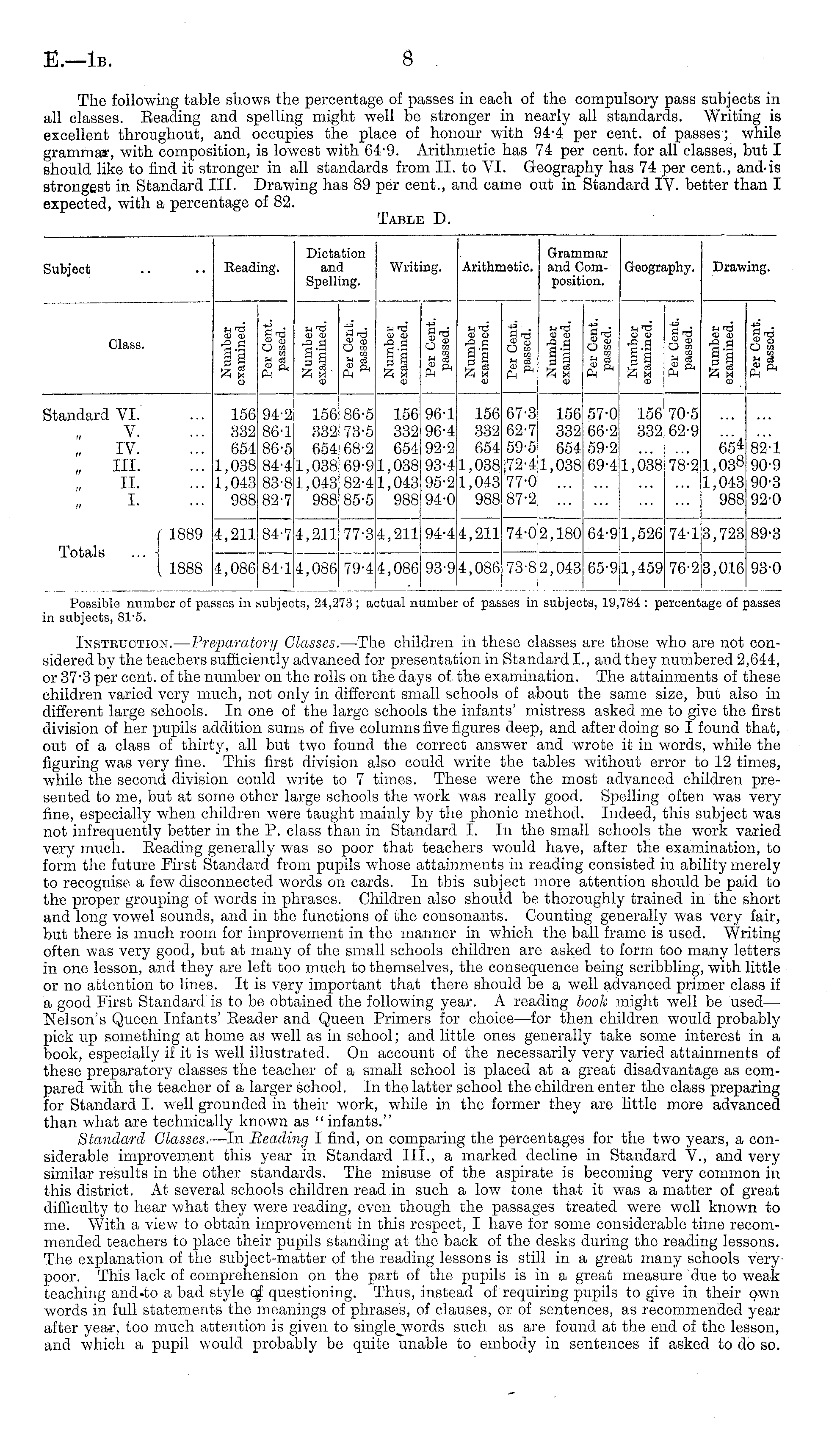 Diets am Spell sition Gram andC positi mar iubjeot Bead: ing. Writ: ingArith: tetic. iomion. Geogri ■,phy. Drawing. d ling. Class. II OS 1^ CD CV 0 4^» B -a II J5 1 h O w w II "§■2 <D Q -fc3 !zi % 43 i itandard VI. V. „ IV. „ III. II. I. 156 332 654 1,038 1,043 988 94-2 86-1 86-5 84-4 83-8 82-7 156 332 654 1,038 1,043 988 86-5 73-5 68-2 69-9 82-41 85-5 156 332 654 1,038 1,043 988 96-1 96-4 92-2 93-4 95-2 94-0 156 332 654 1,038 1,043 988 67-3 1 62-7| 59-51 )72-4 77-0 87-2 156 332 654 1,038 57-0! 66-2; 59-2i 69-41 156 332 ... 11,038 70-5 62-9 78-2 654 1,038 1,043 988 82-1 90-9 90-3 92-0 t 1 I I ( 1889 Totals ... \ { 1888 4,211 84-7 4,211 77-3 4,211 94-4 4,211 74-0 2,180 64-9 1 1,526 I I I 74-1 i 3,723 894,086 84-1 4,086 79-4 4,086 93-9 4,086 73-8 2,043 65-9 1,459 76-2 3,016 93"