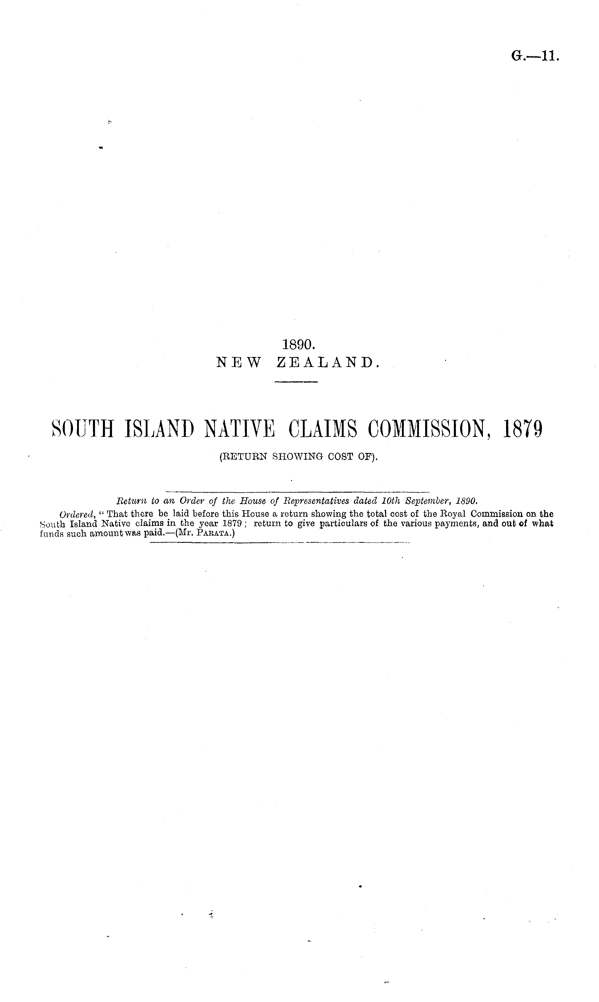 SOUTH ISLAND NATIVE CLAIMS COMMISSION, 1879 (RETURN SHOWING COST OF).