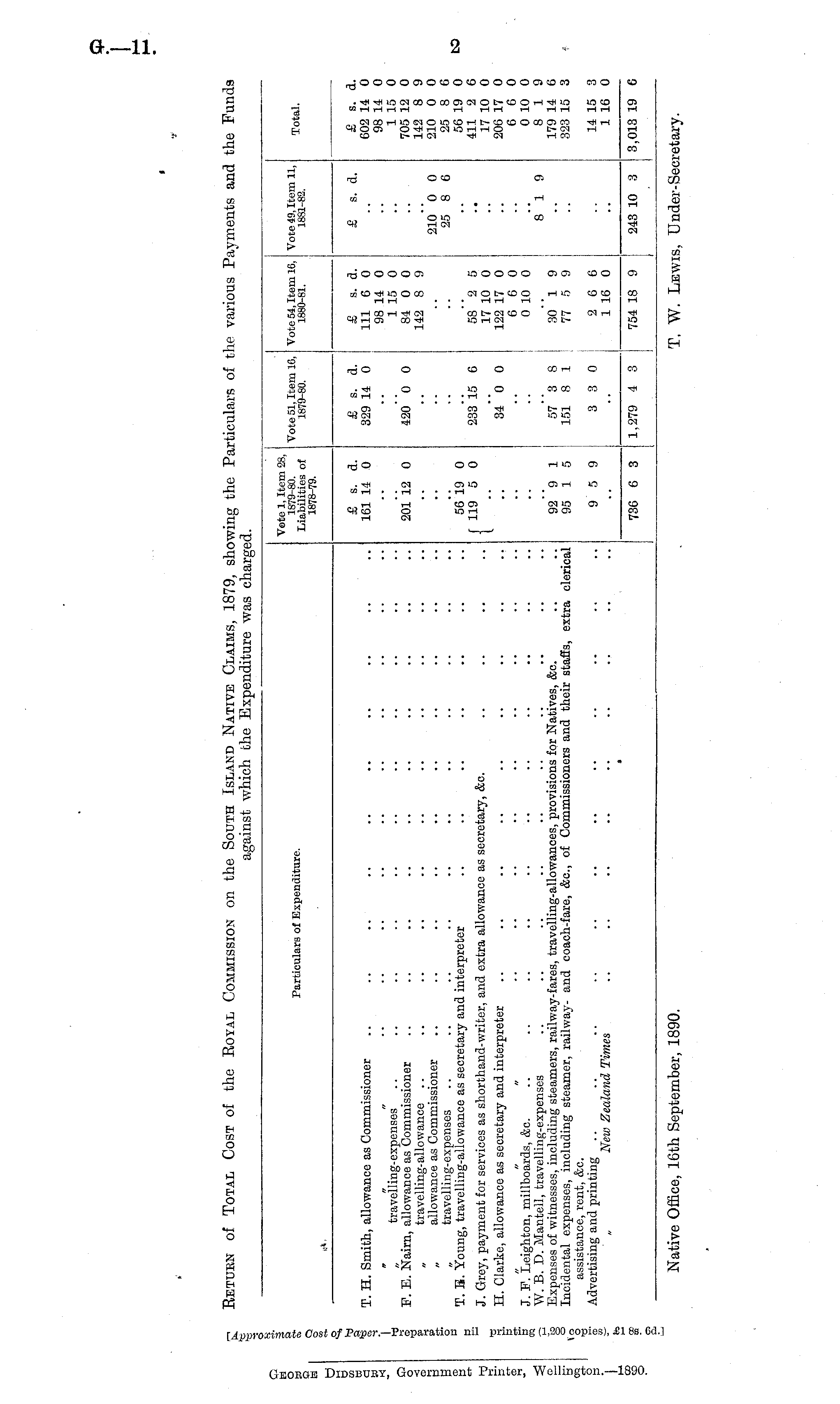 Native Office, 16th September, 1890. . T, W. Lewis, Under-Secretary.