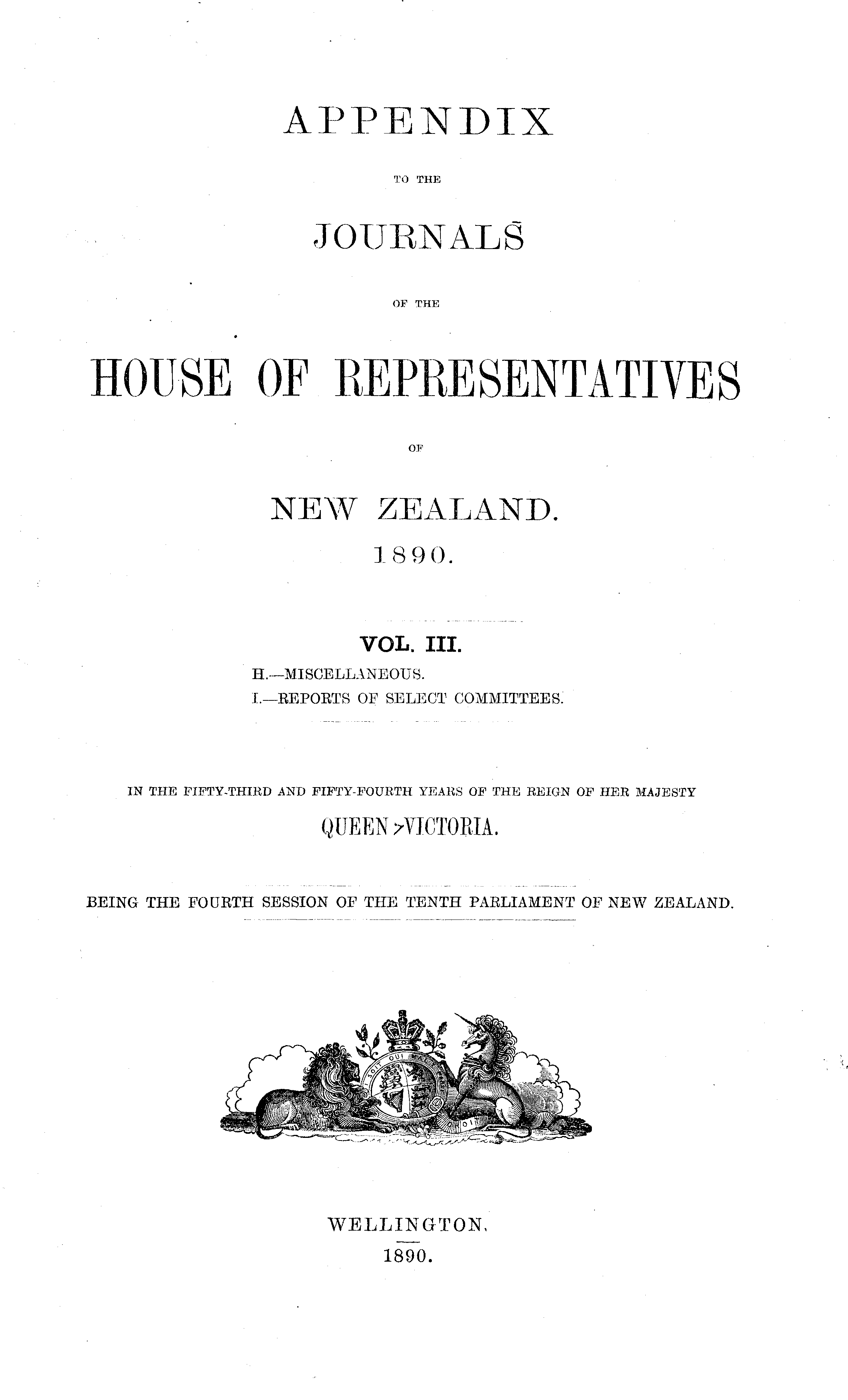 APPENDIX TO THE JOURNALS OF THE HOUSE OF REPRESENTATIVES OF NEW ZEALAND. 1890.