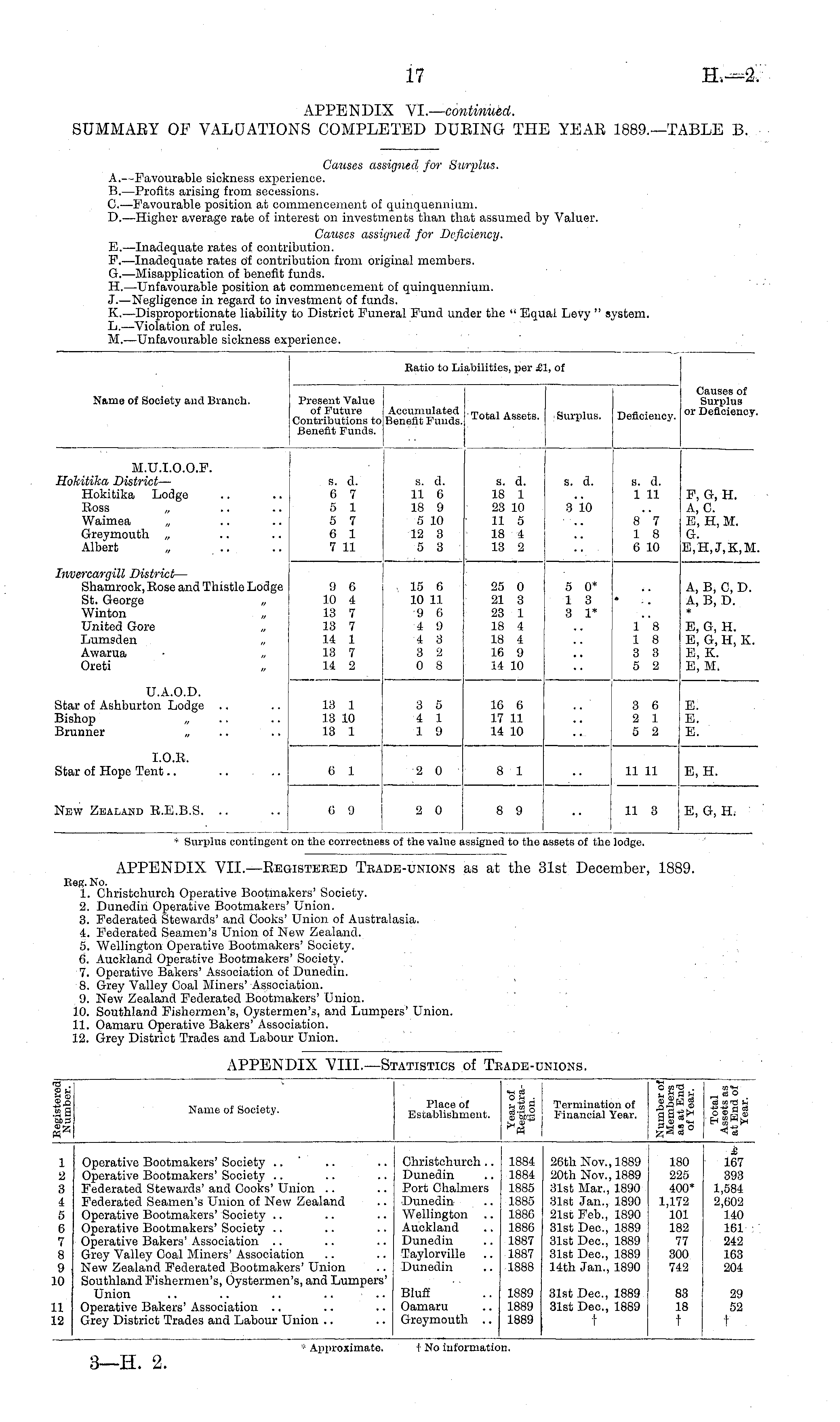 APPENDIX Vll.—Registered Trade-unions as at the 31st December, 1889. Reg. No. 1. Christchurch Operative Bootmakers' Society. 2. Dunedin Operative Bootmakers' Union. 3. Federated Stewards' and Cooks' Union of Australasia. 4. Federated Seamen's Union of New Zealand. 5. Wellington Operative Bootmakers' Society. 6. Auckland Operative Bootmakers' Society. 7. Operative Bakers' Association of Dunedin. 8. Grey Valley Coal Miners' Association. 9. New Zealand Federated Bootmakers' Union. 10. Southland Fishermen's, Oystermen's, and Lumpers' Union. 11. Oamaru Operative Bakers' Association. 12. Grey District Trades and Labour Union.