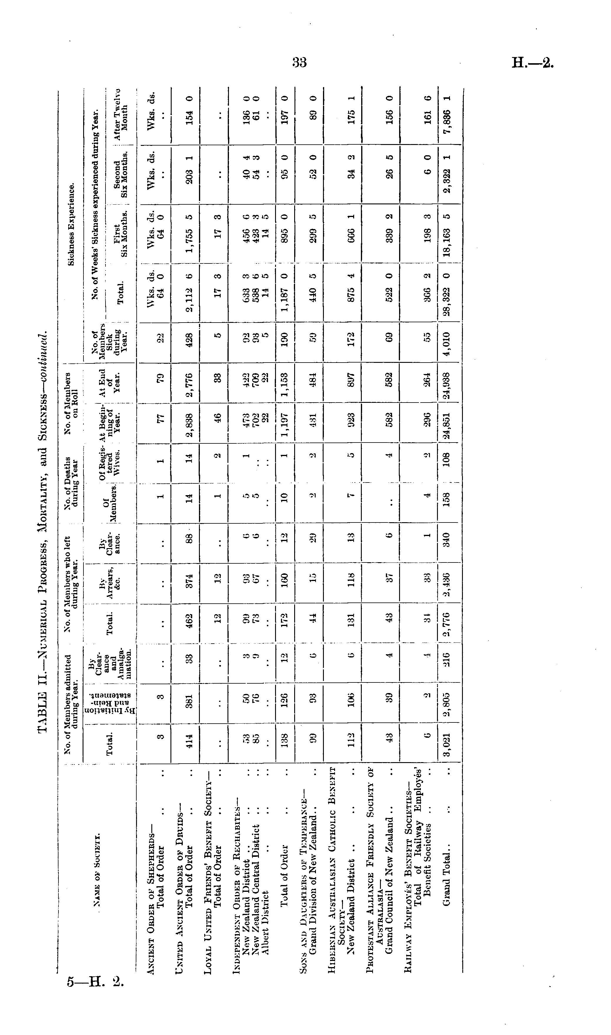 TABLE II.—Numerical Progress, Mortality, and Sickness— continued.
