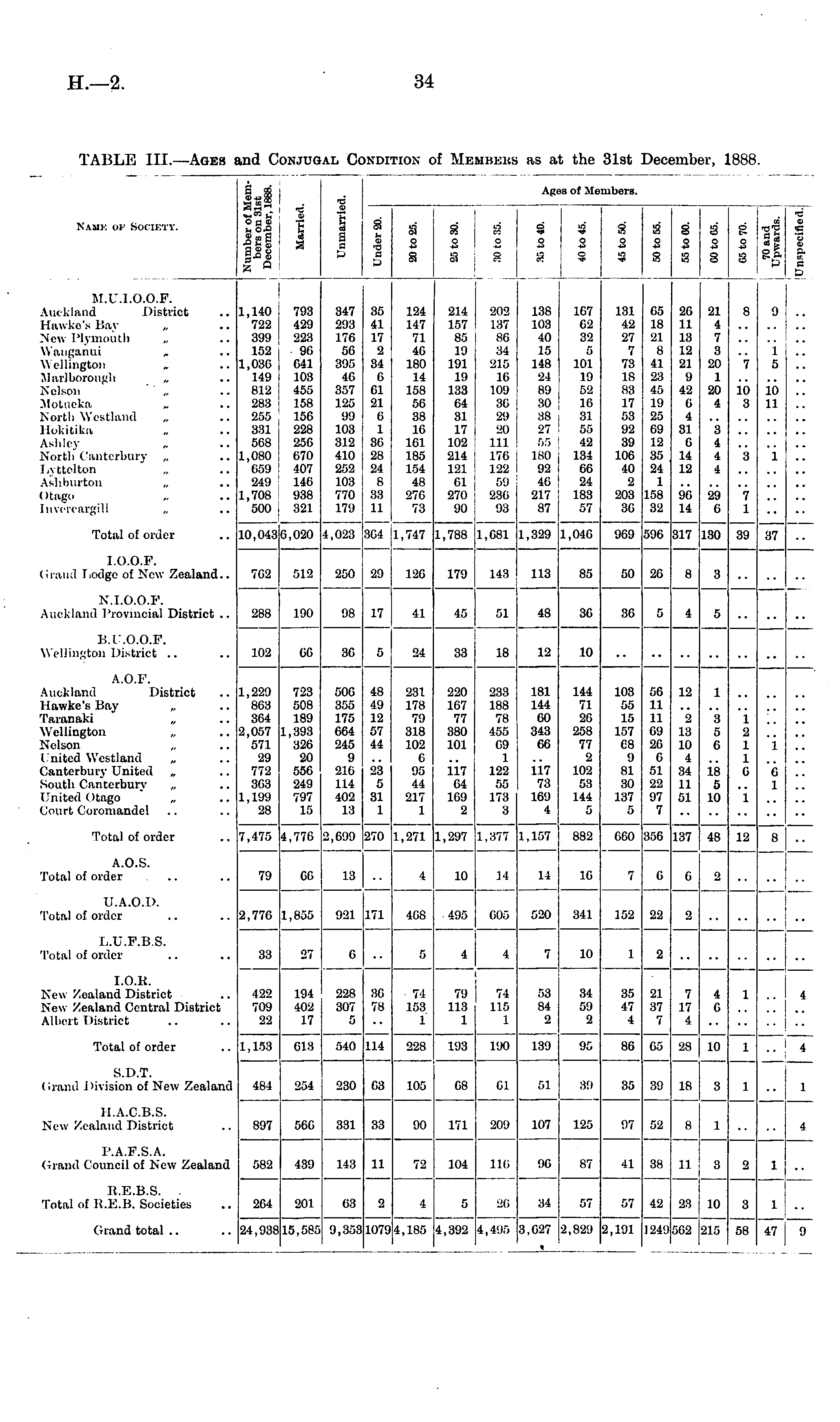TABLE III.—Ages and Conjugal Condition of Members as at the 31st December, 1888.
