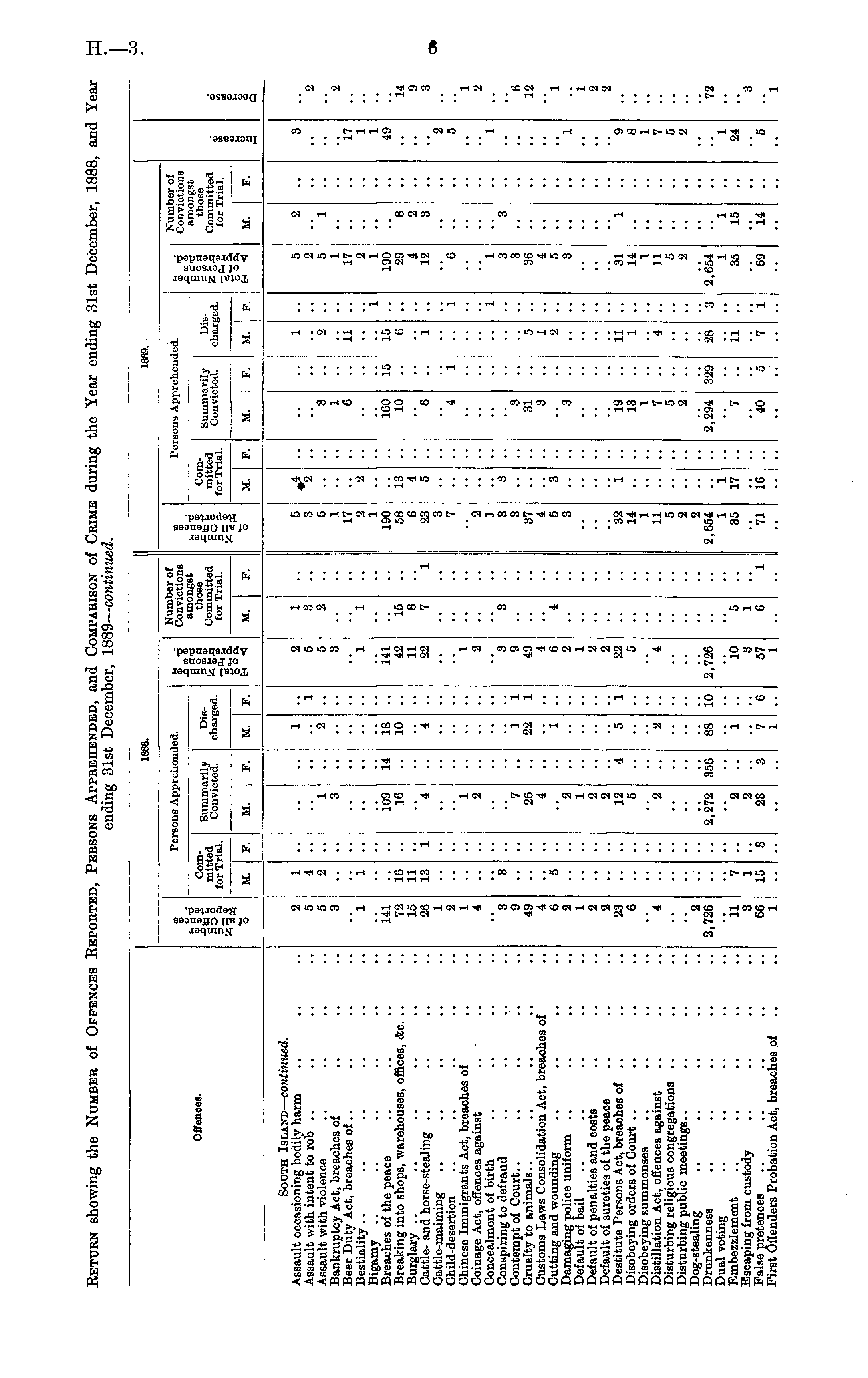 Return showing the Number of Offences Reported, Persons Apprehended, and Comparison of Crime during the Year ending 31st December, 1888, and Year ending 31st December, 1889— continued.