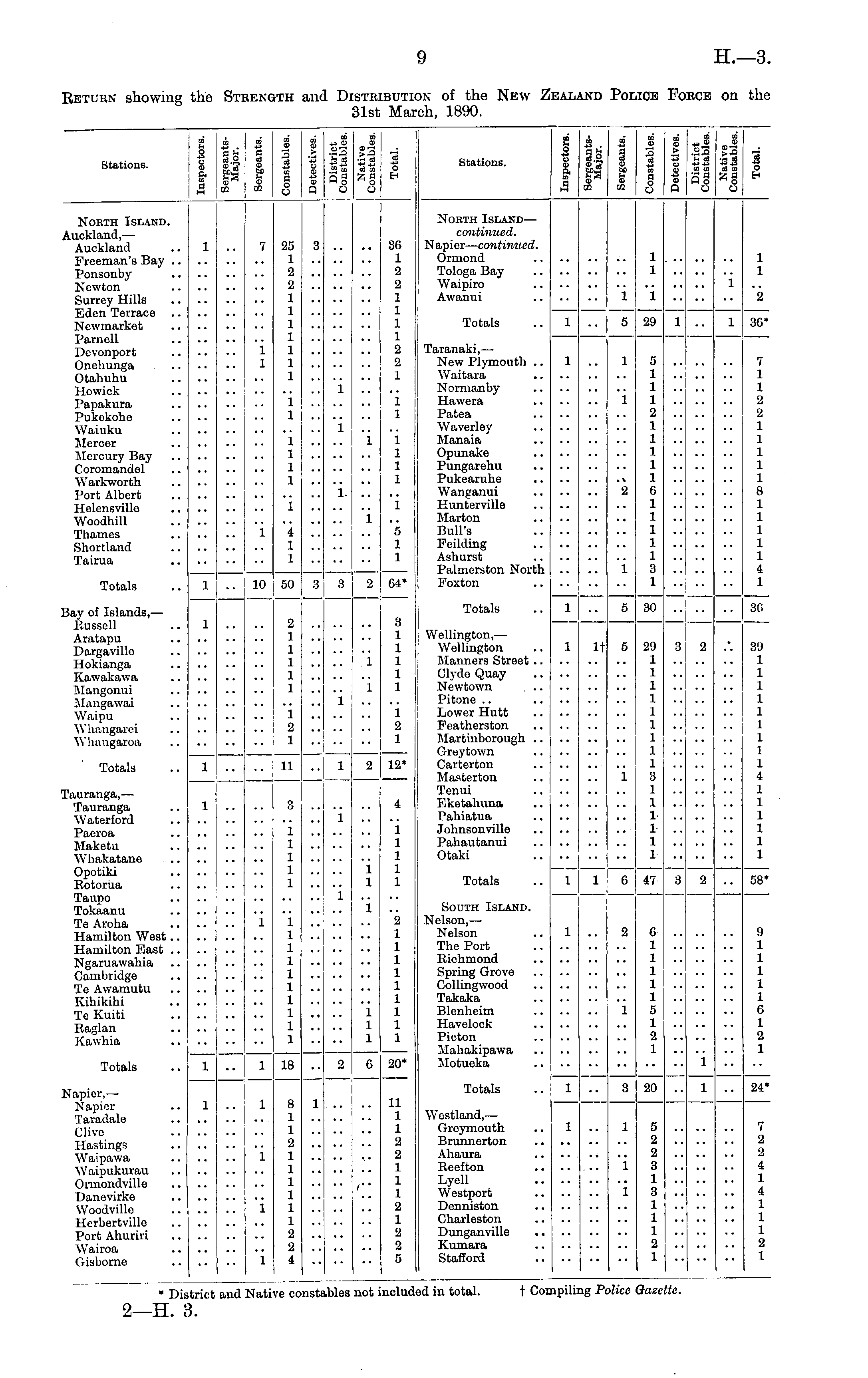 Return showing the Strength and Distribution of the New Zealand Police Force on the 31st March, 1890.