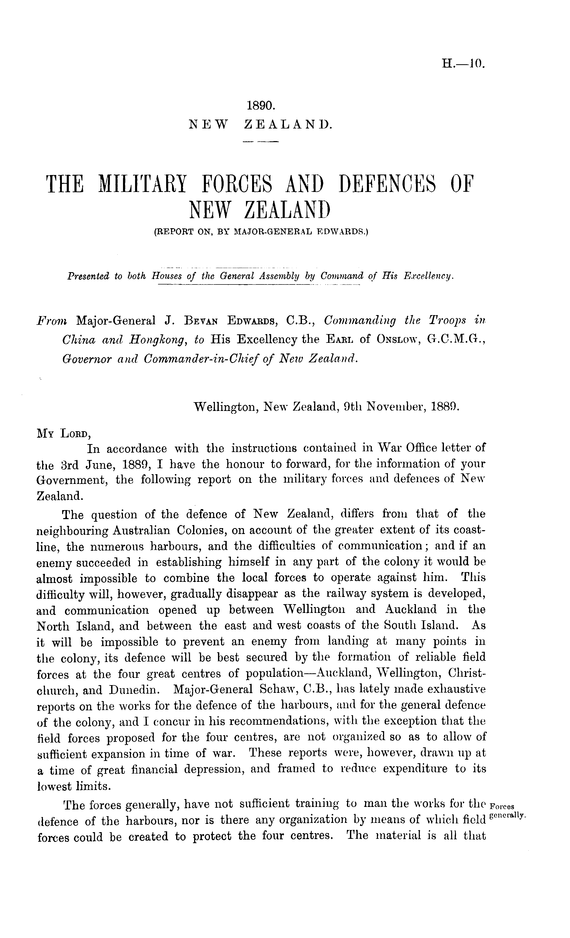 THE MILITARY FORCES AND DEFENCES OF NEW ZEALAND (REPORT ON, BY MAJOR-GENERAL EDWARDS.)
