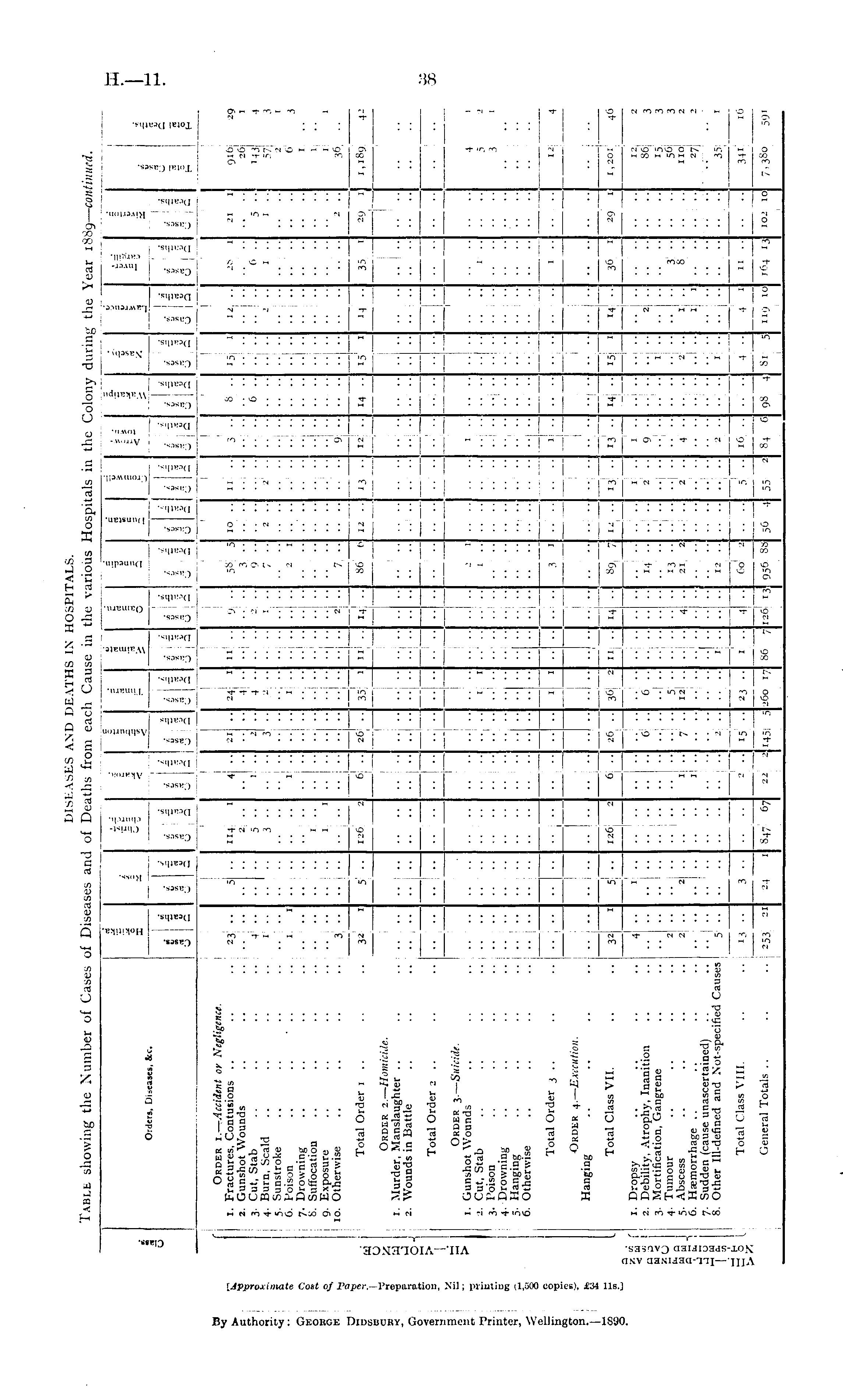 u Orders, Diseases, &c. rt K rt rt Ji ■ K re rt Ji 0% < < rt i rt "rt E it 0 ' . 0 c rt Q 'i. rt rt i 1 3 % rt rt " s -' — a. rt rt in rt 3 a 1 rt m rt /. ~ rt Ji « I O rt o I c (A rt ( rt rt e . .. 5 I rt i J£ u a m rt rt Ji r. in i rt rt X 3r rt i. rt j; J) — U Q ■t. rt ■ rt i ■ rt rt Ji K rt rt 2^ u , a ! I I I I I I I I I Order i.—Accident or Negligence. 1. Fractures, Contusions .. .. .. 23 .. 2. Gunshot Wounds .. .. 3. Cut, Stab .. .. .. .. 4 .. 4. Burn, Scald .. .. .. 1 .. 5. Sunstroke .. .. .. 6. Poison .. .. ' .. .. 1. 1 7. Drowning .. .. .. 8. Suffocation .. .. .. .. j .. 9. Exposure .. .. .. .... 10. Otherwise .. .. .. .. i 3 .. Total Order 1 .. .. .. 32 1 5 •• •■ • •■•• 114 1 5.. 3 •• .-■••■ 4 •• 1 .. •- ■• 1 .. 2 3 21 • • • H ■■ 1 - 24 * 4 •• 4 •• 1 .. .. .. 11.. 'J ■■ .. .. 58 5 3 •• 9 •• 7 ■■ 2 1 10 . . .. .J 2 . . :: :: 11 .. 2 .. ■ 3 ■• .. .. .. .. .. .. 8 .. 6 '.'. .. .. H" 15 1 .. .. 12 .. ' •' .. .. 2,-5 I 6 .. 1 .. • 21 Ij .. 5 •• 1 .. 916 29 26 I 143 4 57 3 2 1 6 3 ..... ■ •■ ...J .. . h • .. .. .. .. • " , .. - - .. • .. .. .. .. .. .. I- • • 1 .. 1 36. ■■ 1,189 4- .. •• ■ A .. .. 35 1 • • -I ■■ 91 •• 12 .. .. .. .. .. .. .. h-H 126 2I .. .. 6 .. 26 •• - HH 1" 86' 6 HH — H «5 1 ••!•• — H 2 . H12. 13 •• M. M 29 1 o > Order 2.— Homicide. 1. Murder, Manslaughter .. .. 2. Wounds in Battle .. .. Total Order 2 .. .. Order 3.— Suicide. 1. Gunshot Wounds .. .. 2. Cut, Stab .. .. .. 3. Poison .. .. .. 4. Drowning .. .. .. 5. Hanging .. .. .. ...... 6. Otherwise .. .. .. ...... .. .. H-H .. .. — H ••!•• H H ..- .J .. .. •• •• -1 ._.. —H I — HH —— •• —' •J • H ■■ — — H • .. .. HH ■ • hM • HH HM MM HH ■A ~M •• ■• 1 H-i hM — — •• — •• - H • \-~A HM .. .. 1 — H .. .. A .. . -'•• • _j — —" .. .. .. 1 I i .. .. I I .. .. I ::: 2 1 .. 1 .. 4 1 5 2 3 t .. .. •■■• .. .. ■■ ■■ ... .J 1 ... • - .. .. .. .. - " .. .. .. .. ::':: .. .. ., .. .. .. .. .. .. .. ..... ••I- .. .. ..,.. .. . .- •■ .. .. ■ - .. .. .. .. .... ..... :: :: .. .. ..... .. .. •.... .. .. £5 . I*. Q I in I — ! H Total Order 3 .. .. .. .. j .. I ■• •■ • •■ • :•• •■;•• —- •• •• HH HH • • m .. .. .. .. 3 1 .... hiHH . .. 1 .. ■•■•■ — H HH " .. .. — H .. .. - - H-H .. .. .. .. 12 4 Order 4.— Execution. i HH • — —j — —j —.— ~M -\H — M -M Hanging .. .. .. .... j .. j Total Class VII. .. .. 32 il I 1. Dropsy .. .. .. .. 4 .. 2. Debility, Atrophy, Inanition .. 3. Mortification, Gangrene .. 4. Tumour .. .. .. .. 2 .. 5. Abscess .. .. .. .. 2 .. 6. Haemorrhage .. .. .. 7. Sudden (cause unascertained) .. 8. Other Ill-defined and Not-specified Causes 5 : .. •• — 32 4 .. .. 1 .. 126 2I .. .. 6 .. 26 .. 6 '.'. .. .. 36J 2 TT 6 .. A :: .. .. -H HJ •• H Ml • H I- - 3 9l 4 14 .. h12 . .1 . .. .... 13 •• 1 ■• ;•• 13 •■ ..j.. HH 14, ——^ 15 i| .. .. 14 .. 2 .. 36 1 .. . — H 29 J HH .. 1,201 46 12 2 86 3 15 3 56 3 IIO 2 27 2 .... 1 .. .. .. .. 1 .. .. .. .. ■■ - 13 .. 21 2 . .1 .. 2 9 •• .... •• •• 1 .. 2 .. .. .. .. .. .. .. .. 2 .. .. .. .. 7 •• 1 .. ■■ 2 .. ... .. 3 ■• 2 2 .. 1 .. I .. 4! • 41 .. 1 1 .. .. - I- !•• • .. .. .. .. - •■ I2 " 2 . . h-H 1 .. • • ••-• - •• I " " •• •■ 5 .. .. ••!•• •• •• " •• 3 •■ .. .. HA .. .. • •• 35 1 341 16 Total Class VIII. .. .1 13 .. 13 3.. H r-.H —H 11 H H T^lM HH — —^ *H HH 4 •• H-H — H 44 23 ■■ 260 17 4 126 ■A .. General Totals .. .. .. 253 21 !—. 847 g4 — H 86 7 H 56 4 84 6 —H — H 7.380 591 253; 21 *« « * . 145 5 Ui 956 88 98 4 81 5 119 IO] 164 i4 102 10] ! \ 1 11
