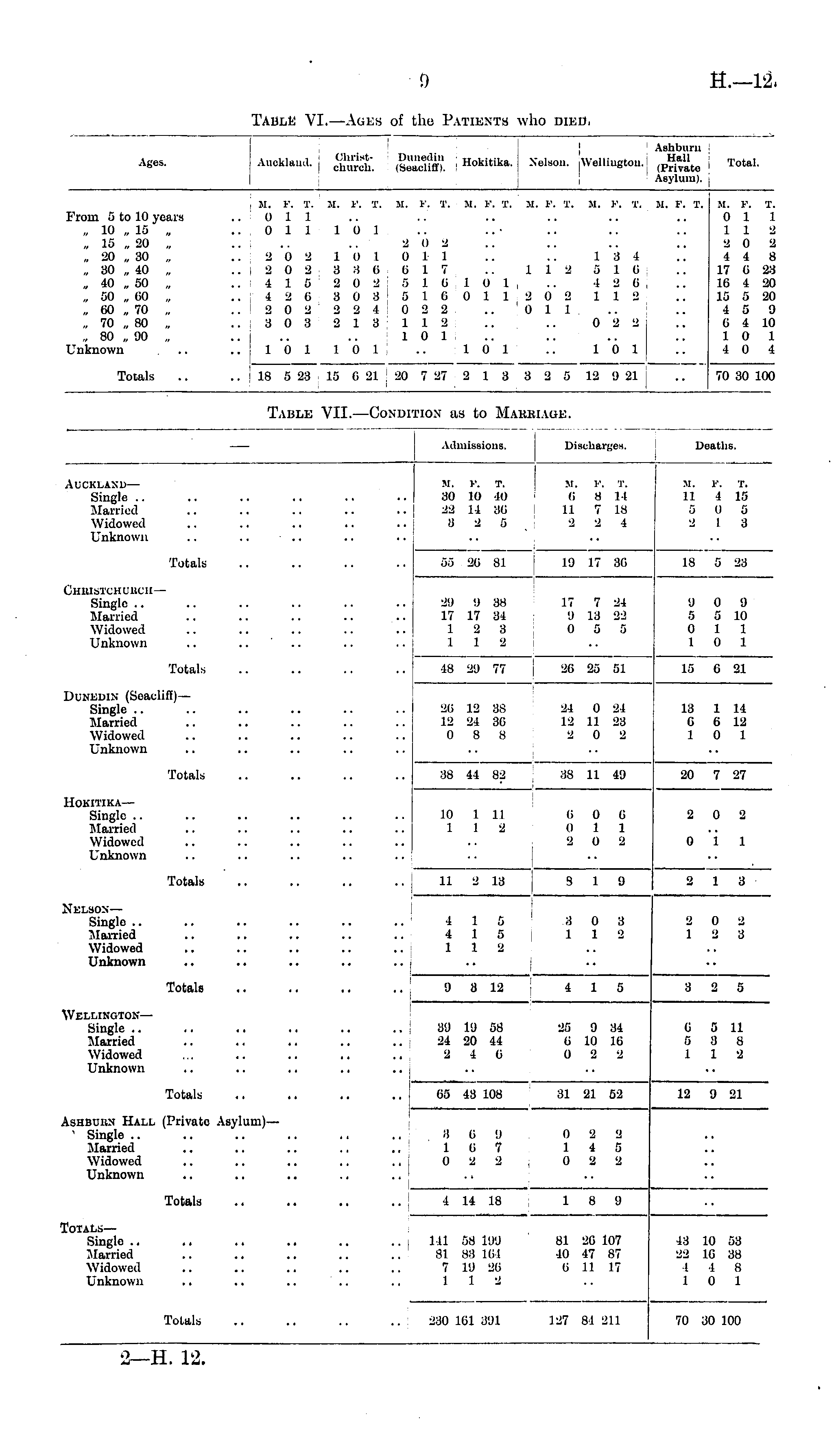 Akc.-. Ashborn j Auckland. <££& ,S HoUtika. Nelson. Wellington. „£«»,„ Asylum). Total. From 5 to 10 years „ 10 „ 15 „ „ 15 „ 20 „ ,. 20 „ 30 „ „ 30 „ 40 „ „ 40 „ 50 „ „ 50 „ 00 „ „ 60 „ 70 „ ,. 70 „ 80 „ „ 80 „ 'JO „ Unknown Touils M. P. T. If. P. I. M. F. T. If, P. T. 31. P. T. ..Oil Oil 101 2 0 2 2 0 2 10 1 Oil 2 0 2 8 8-6 0 17 .. 112 115 2 0 2 5 16 10 1 4 2 0 3 0 3 5 10 0 11 2 0 2 202 22 1 022 .. 'oil 30 3 213 112 .... .. 10 1 ..101101 .. 101 .. 18 5 23 15 0 21 20 7 27 2 13 3 2 5 M. P. T. M, 1'. T. 13 1 5 10 12 0 112 0 2 2 '.'. 1 (I 1 12 '.) 21 M. I' , . T. 0 1 1 1 1 2 2 0 2 4 4 8 17 0 23 16 4 20 15 5 20 4 5 0 0 4 10 1 (I 1 4 0 4 70 30 100 Table VII. —Condition- as to Mabbiage. Admissions. Dischargee. Deaths. Auckland — Single .. Married Widowed Unknown J M. 1 ■'. T. 80 10 40 ■22 14 ao a 2 5 M . V. T. :!() 10 10 22 14 86 3 2 5 If. »'. I 6 .Sill 7 1! 2 2 If. i; ii ■i l\ T. .S 11 7 18 2 4 M. 11 5 •2 P. T. I Iβ 0 5 1 3 Totals 55 20 81 ■'>■') 20 81 19 17 3( 19 17 86 18 5 23 Chbistchubch — Single Harried Widowed Unknown 39 9 88 17 17 34 12 8 l i a 2!) '.) 88 17 17 34 I 2 a 1 1 2 17 7 2- ;> 18 21 0 5 ( 17 7 24 9 18 22 0 5 5 'J ;■, 0 1 0 !) 5 10 1 1 (I 1 Totals 48 29 77 ■18 2!) 77 26 25 51 20 25 51 15 0 21 DoNEDIH (SeacliiT) — Single Married Widowed Unknown 26 12 88 12 24 36 0 8 8 26 12 88 12 24 86 0 8 8 21 0 21 12 1.1 2£ 2 0 1 21 0 21 12 II 23 2 0 2 13 6 1 1 14 6 12 0 1 Totals 38 41 82 88 41 82 88 11 41 38 11 4'J 20 7 27 llOKITIKA — Single Married Widowed Unknown ;; 10 1 II 1 I 2 10 1 1 11 1 2 6 0 ( ii 1 I 2 0 2 6 ii 0 1 0 0 1 -J 2 0 0 1 2 1 Totals 11 2 18 ii 2 13 s l a s i y .j 1 a Nelson — Single Married Widowed Unknown 4 1 5 4 15 1 1 S 4 4 1 1 1 1 5 5 8 o a 1 1 2 8 1 0 1 a ■ ) 1 0 3 Totals 'J a 12 'J 3 12 4 15 i 1 3 2 5 Wellington— Single Married Widowed Unknown 89 l'J 58 24 20 44 2 4 0 au la 58 24 20 44 2 4 0 25 B M 0 10 16 0 2 2 25 B M 6 10 10 0 2 2 o 5 1 5 11 a e 1 2 Totals 65 43 108 65 43 108 31 21 52 31 21 52 12 'J 21 Ashbuun Hall (Private Asylum)— ' Single Married Widowed Unknown \' t 8 (i !) 16 7 0 2 2 ii 1 0 0 0 7 II 2 -1 1 I B 0 2 2 (I 1 0 •I •1 5 Totala 4 14 18 4 14 18 1 8 0 1 8 9 Totals— Single Married Widowed Unknown J II 58 190 SI 88 L64 7 l'J 26 1 1 9 81 26 107 10 47 87 ii II 17 18 10 53 22 10 38 I 1 8 1 0 1 Totals 230 101 3'J1 127 SI 211 127 81 2] I 70 30 100